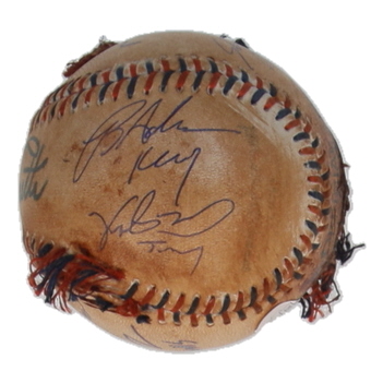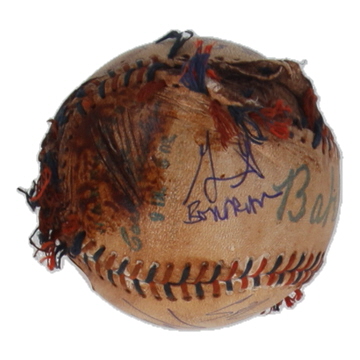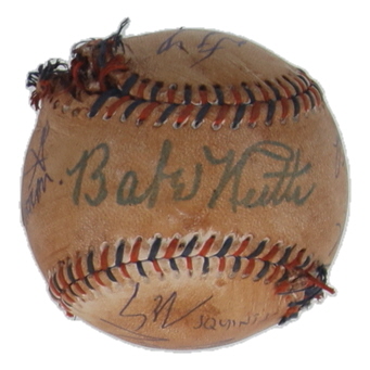 Please note, the Babe Ruth signature is a replica facsimile. The baseball is stained, mudded, and toned.