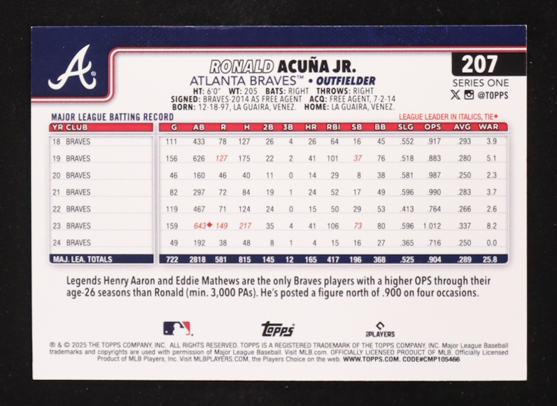 Ronald Acuna Jr. 2025 Topps Series One #207