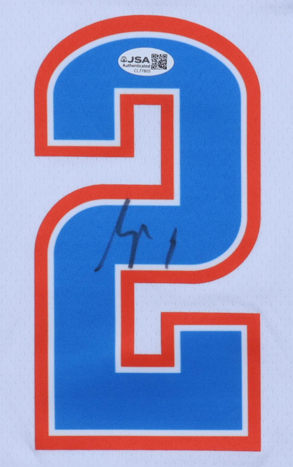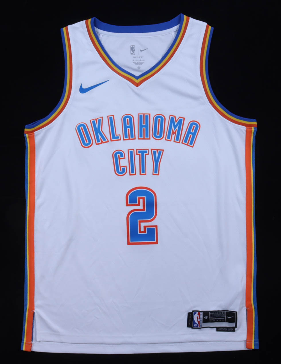 Nike authentic jersey with everything pressed on, size 48. Hand-signed by Shai Gilgeous-Alexander (Oklahoma City Thunder). Please note, there is staining below the reverse number.