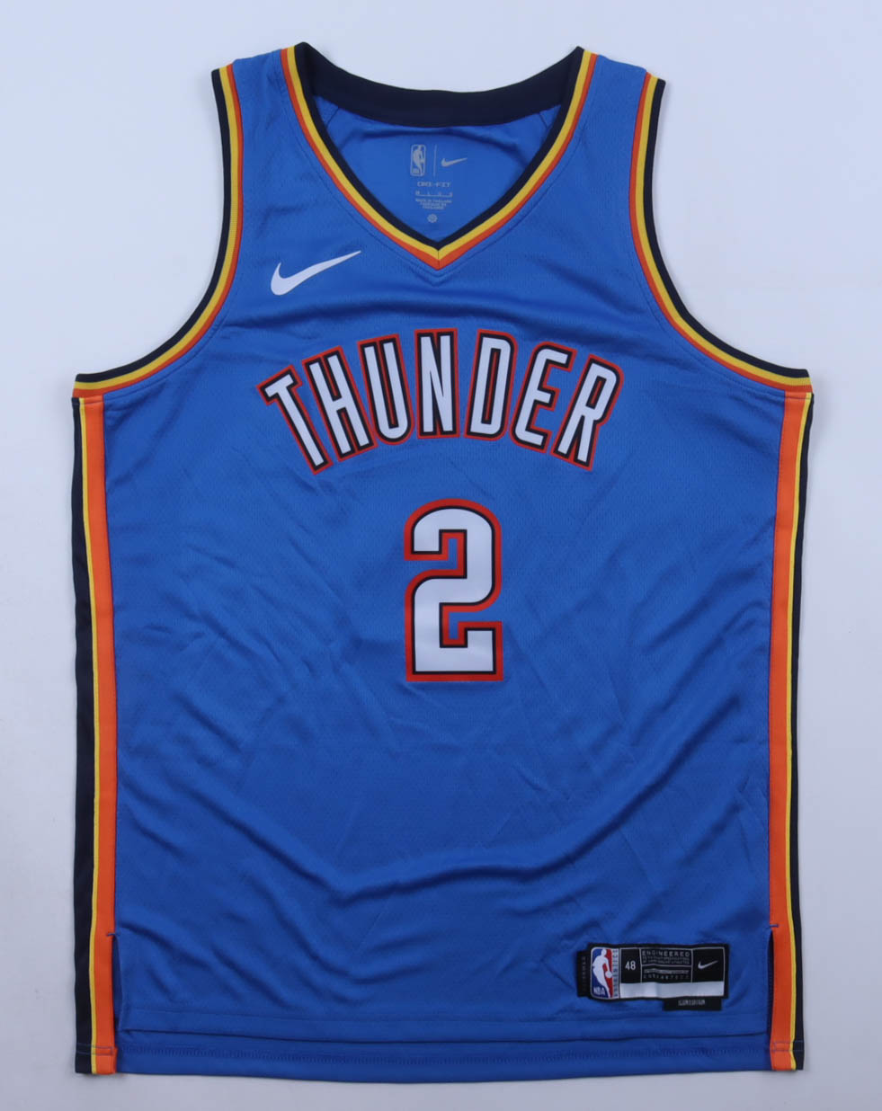 Nike authentic jersey with everything pressed on, size 48. Hand-signed by Shai Gilgeous-Alexander (Oklahoma City Thunder).