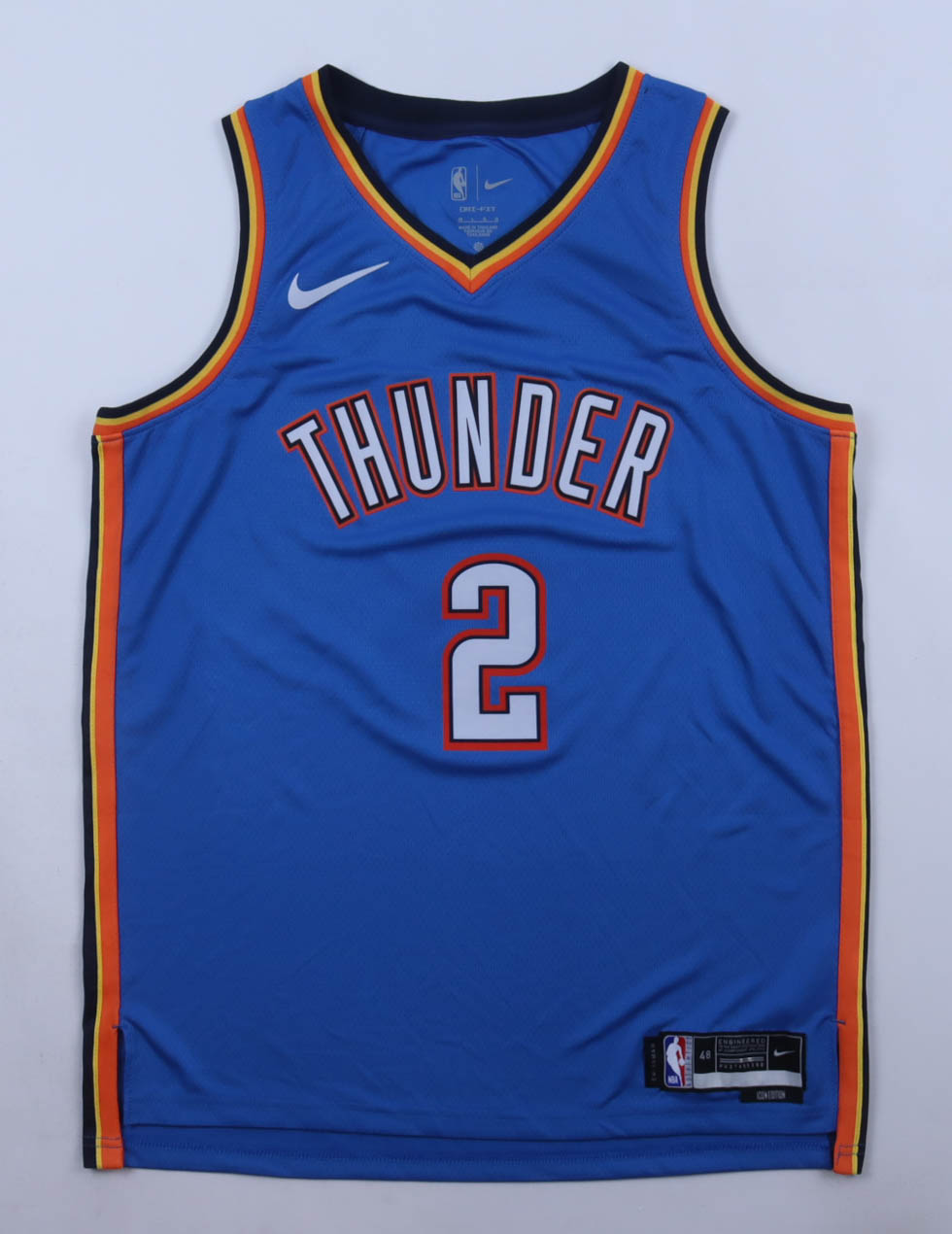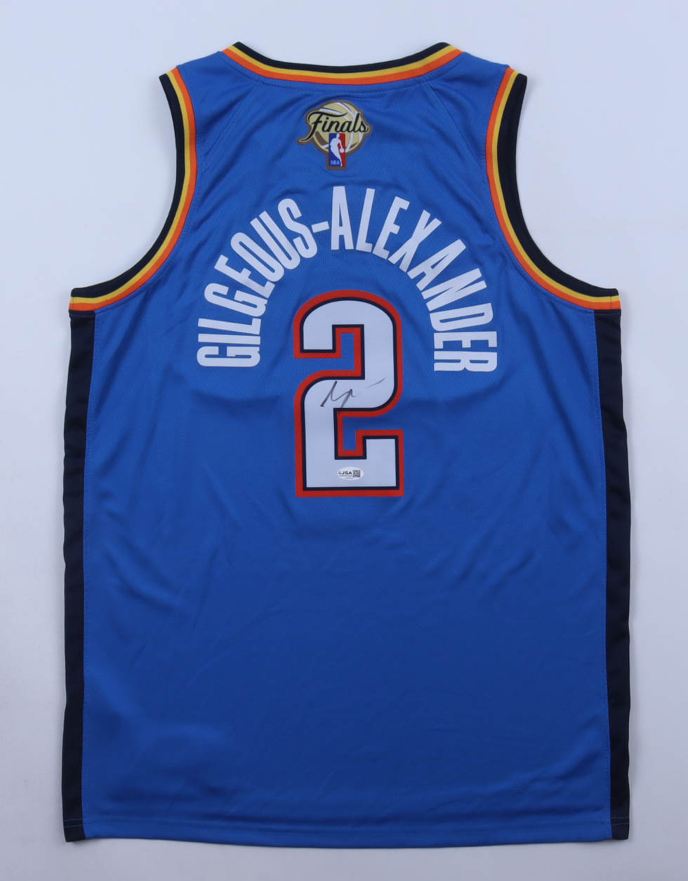 Nike authentic jersey with everything pressed on, size 48. Hand-signed by Shai Gilgeous-Alexander (Oklahoma City Thunder).