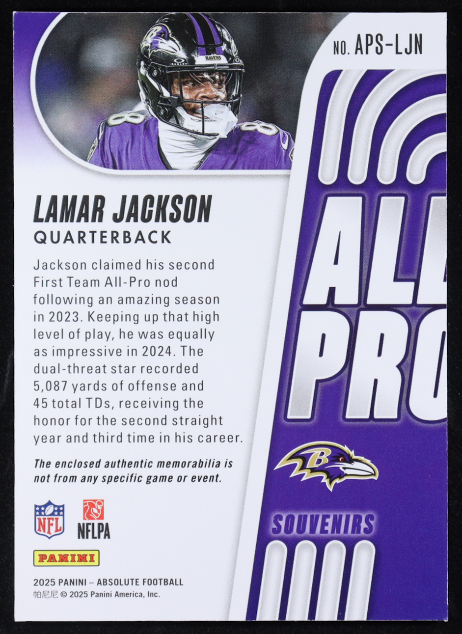 Lamar Jackson 2025 Absolute All Pro Souvenirs Gold #1 #26/99
