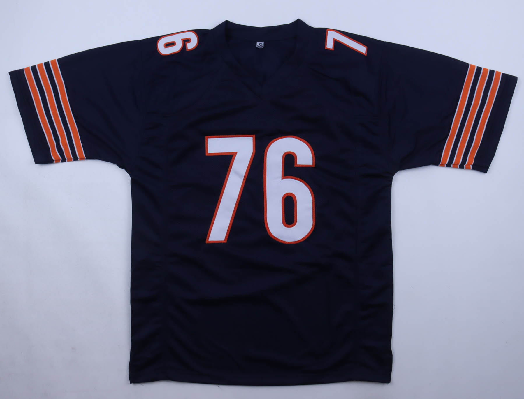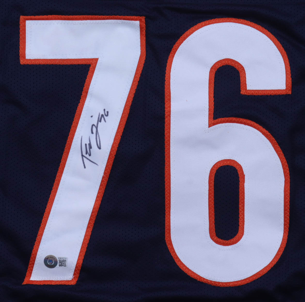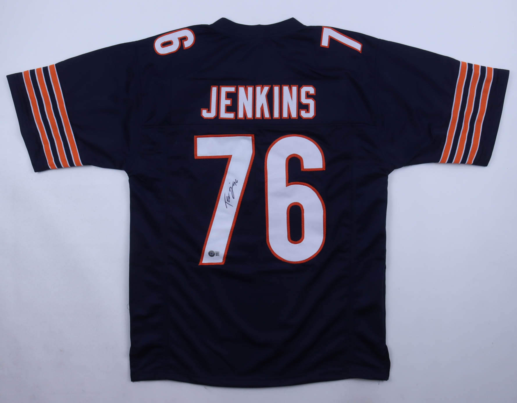 Custom jersey with everything sewn on, size XL. Hand-signed by Teven Jenkins. Please note, glue is visible through the reverse number.