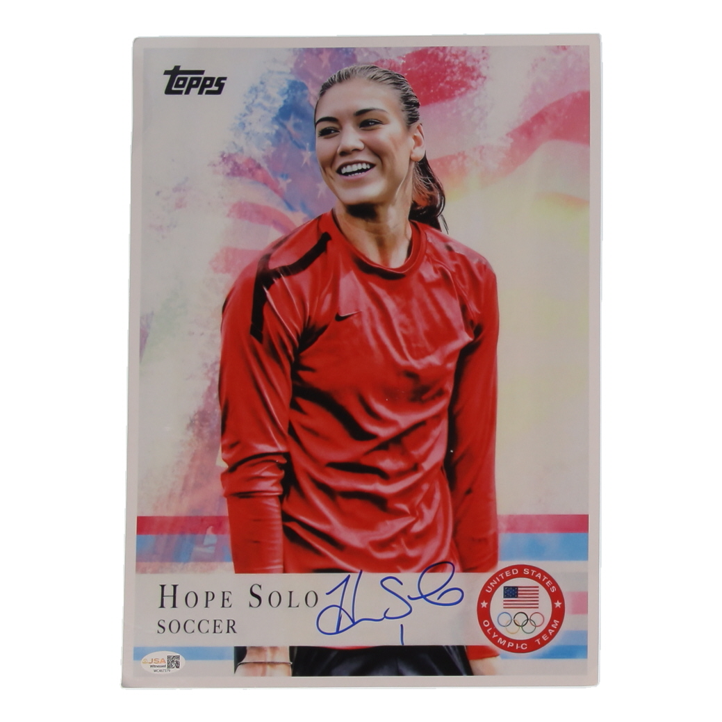 Hope Solo Signed Team USA 10.5x14.5 Topps Poster (JSA)
