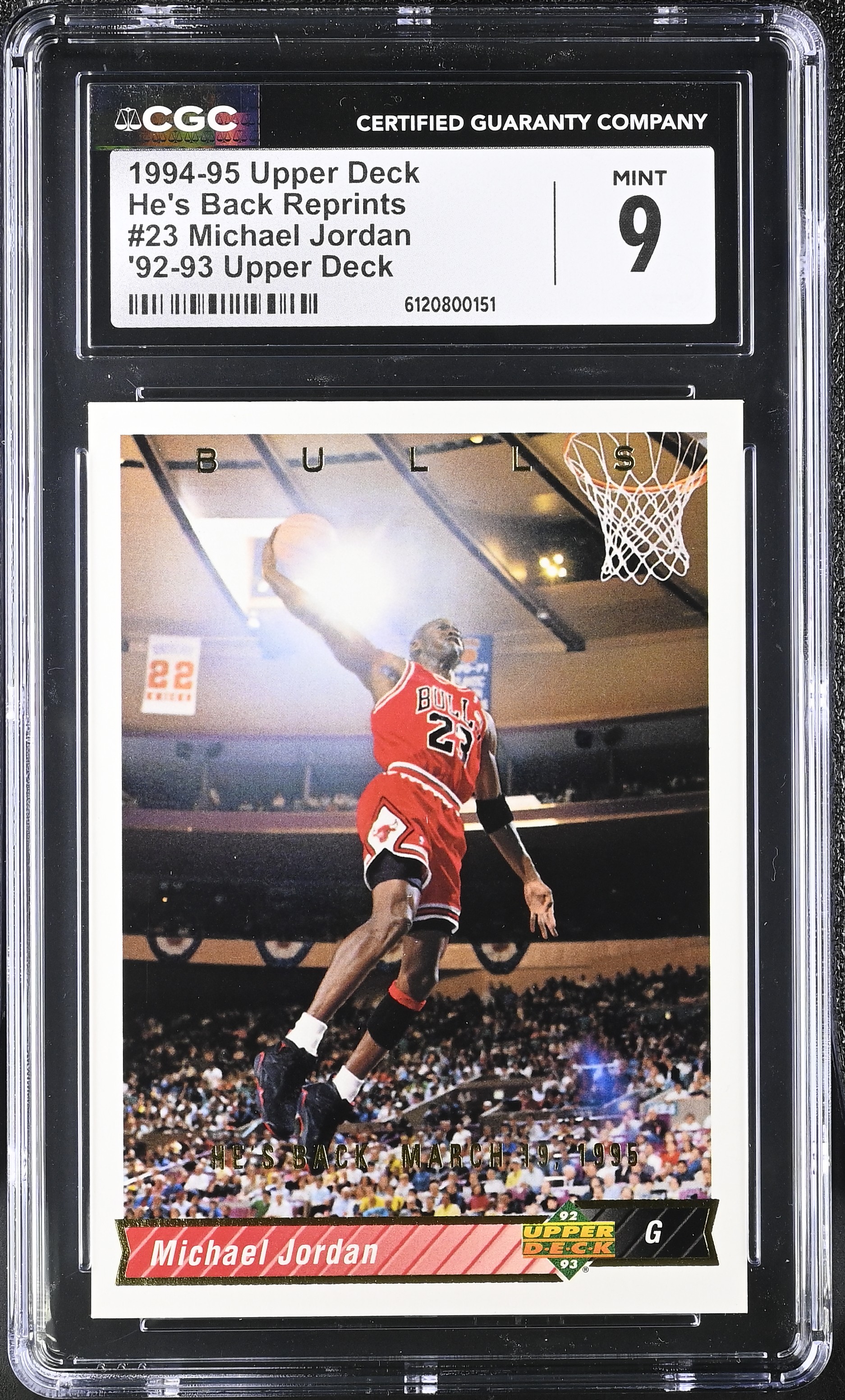 Michael Jordan 1994-95 Upper Deck He's Back '92-93 Reprints #23 (CGC 9)