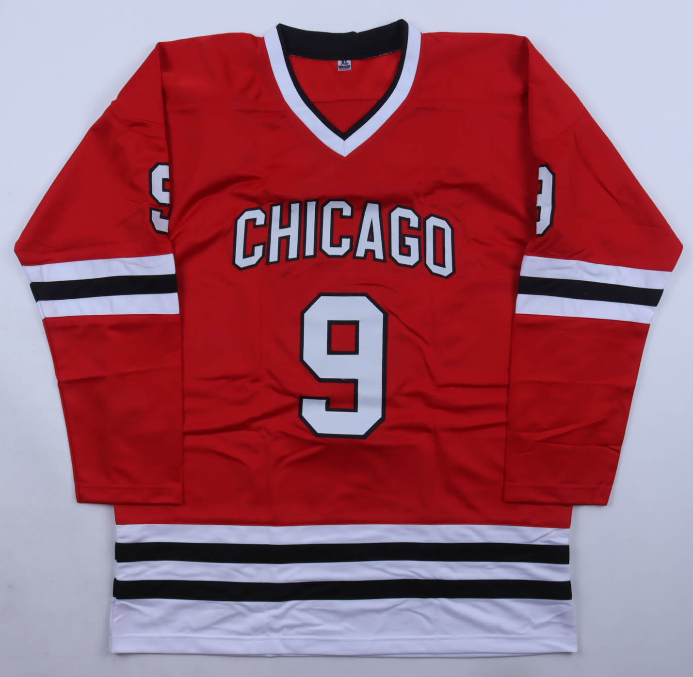 Custom jersey with everything sewn on, size XL. Hand-signed and inscribed by Bobby Hull (HOF). Please note, the signature and inscription has bled.