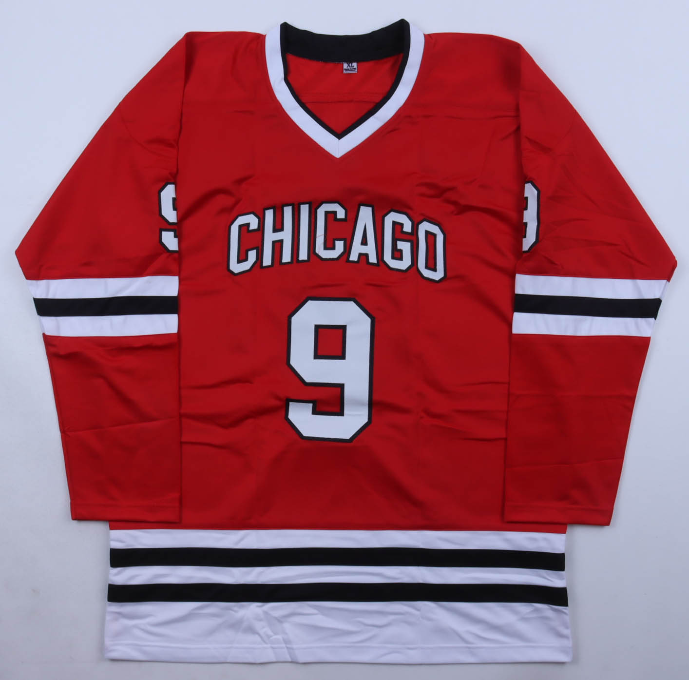 Custom jersey with everything sewn on, size XL. Hand-signed and inscribed by Bobby Hull (HOF). Please note, the signature and inscription have bled.
