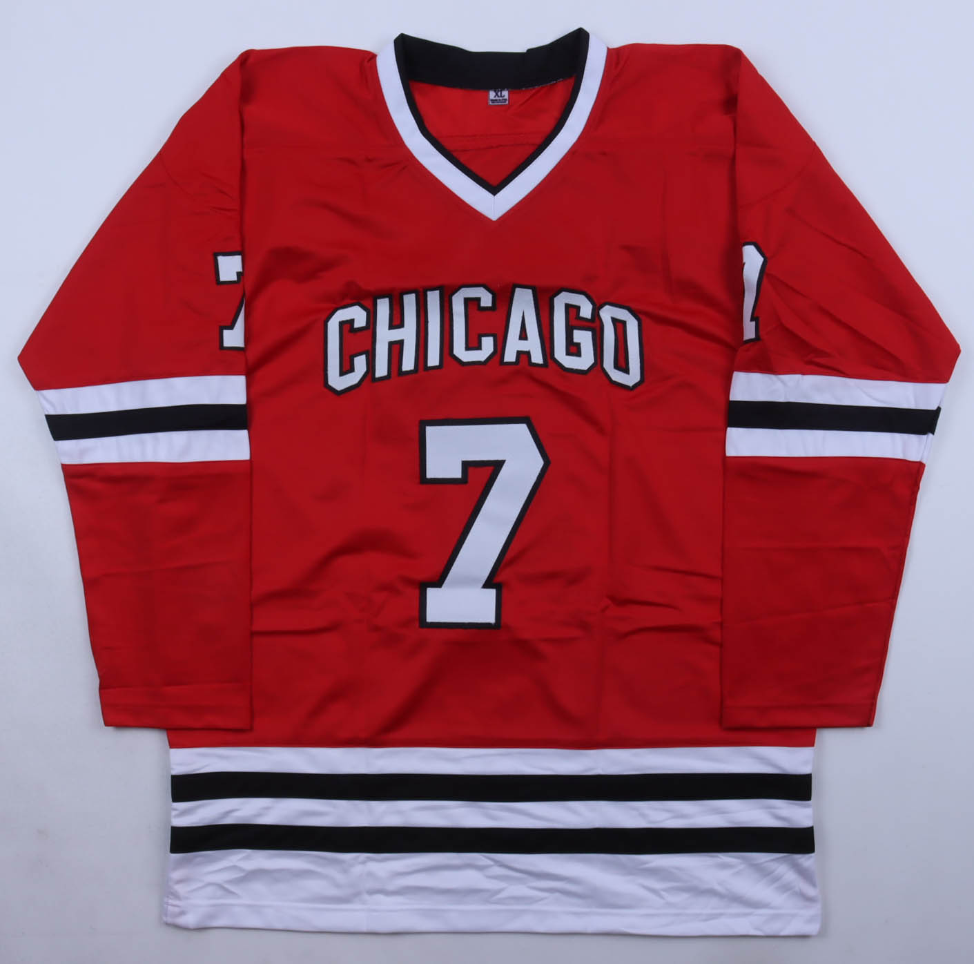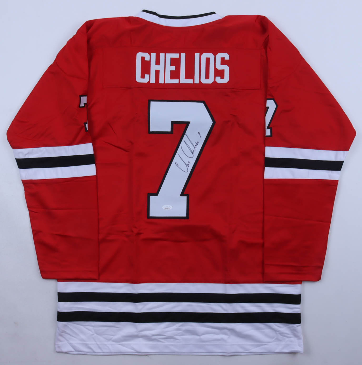 Custom jersey. Everything is sewn on, size XL. Hand-signed by Chris Chelios (HOF).