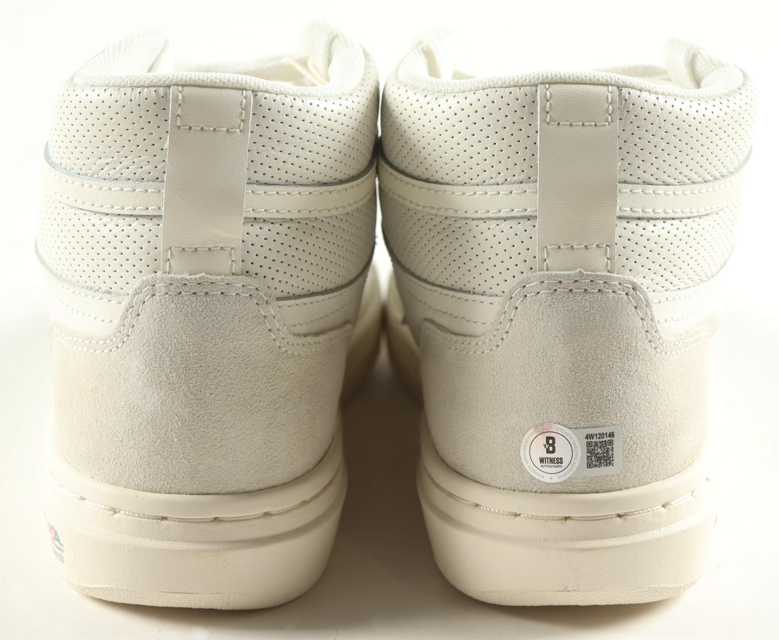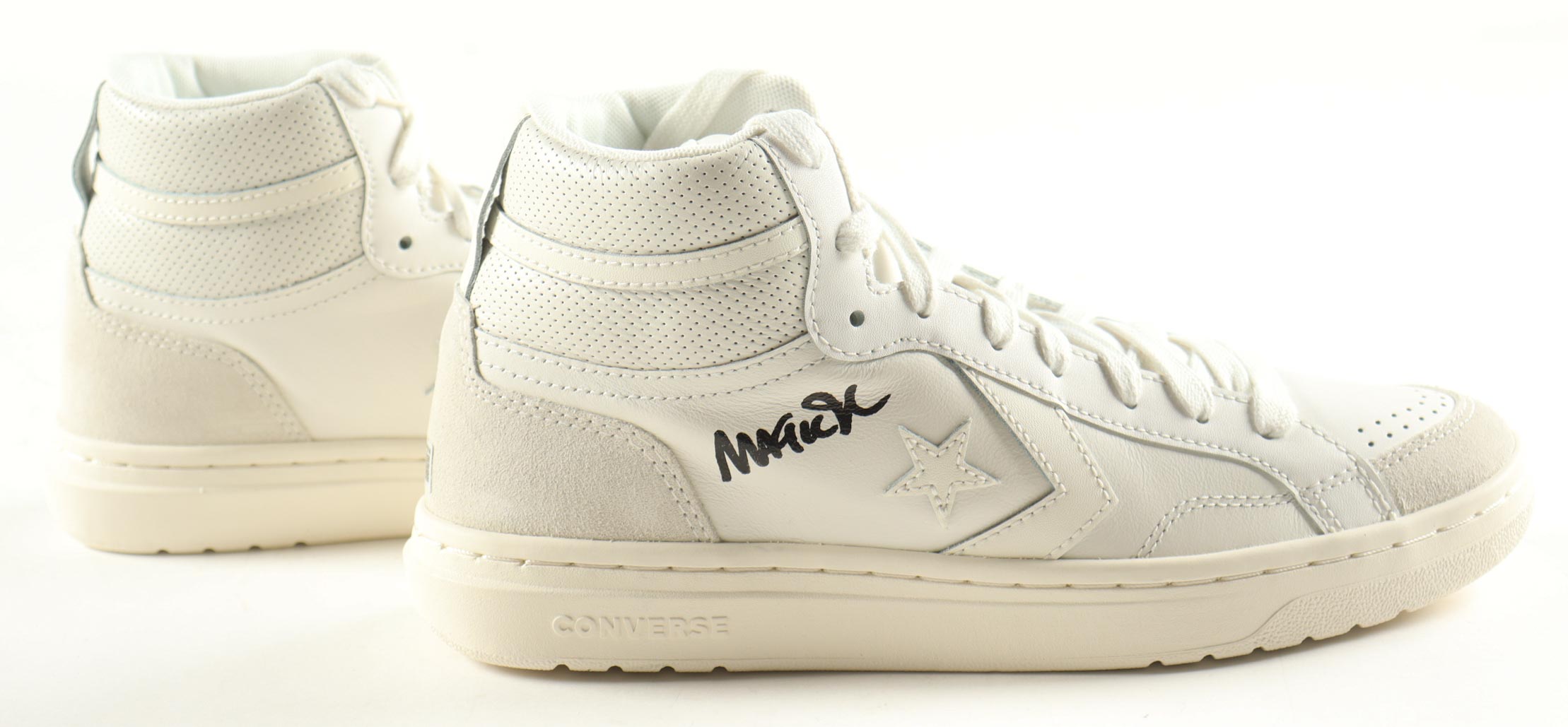 Pair of (2) Converse All Star Weapon White Leather Basketball Shoes. Hand-signed by Magic Johnson (Los Angeles Lakers, HOF) and Larry Bird (Boston Celtics, HOF). Please refer to photos for more details.