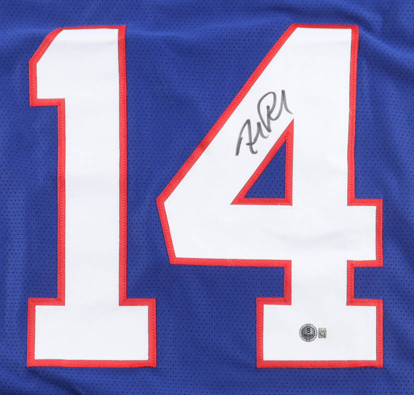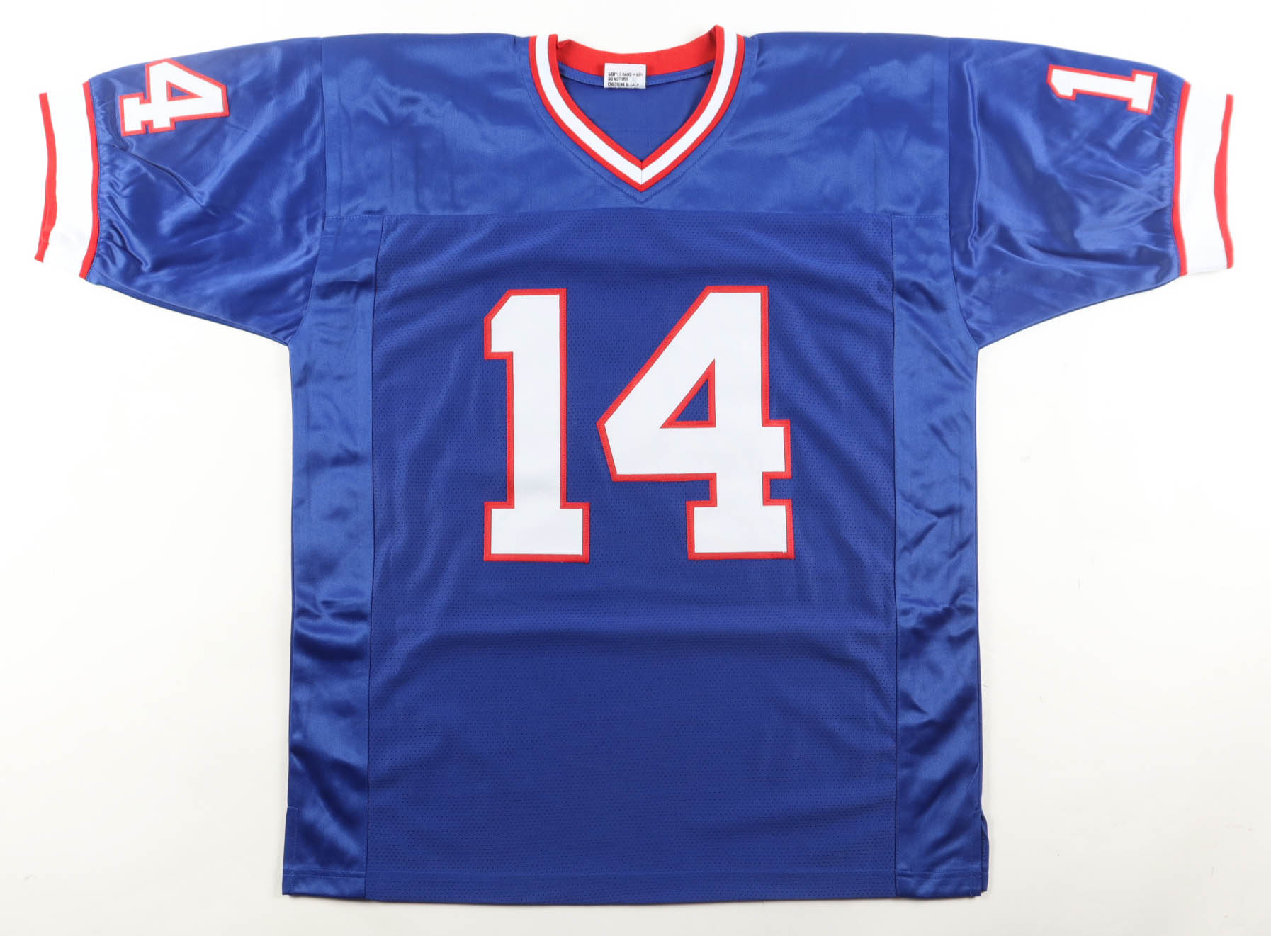 Custom jersey with everything sewn on, size XL. Hand-signed by Frank Reich.