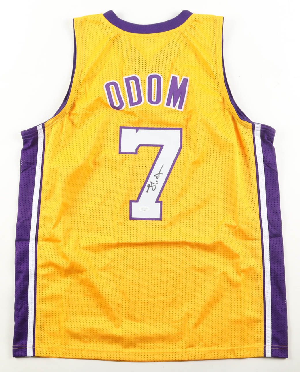 Custom jersey with everything sewn on, size XL. Hand-signed by Lamar Odom.