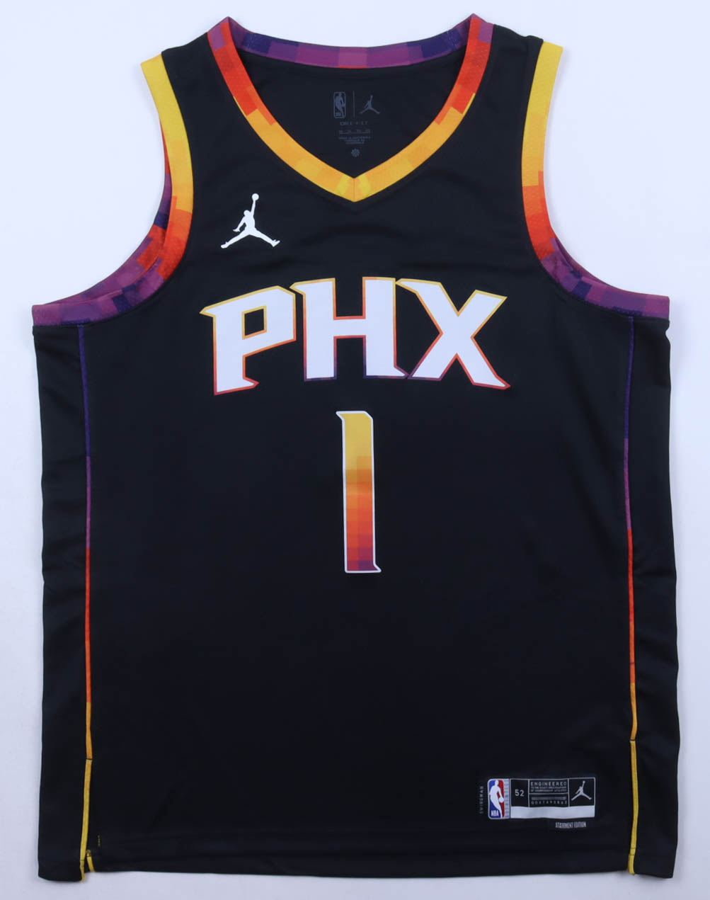 Jordan authentic jersey with everything pressed on, size 52. Hand-signed by Devin Booker (Phoenix Suns).