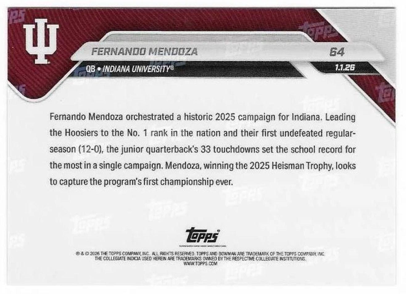 Fernando Mendoza 2025 Bowman University Now #64 RC