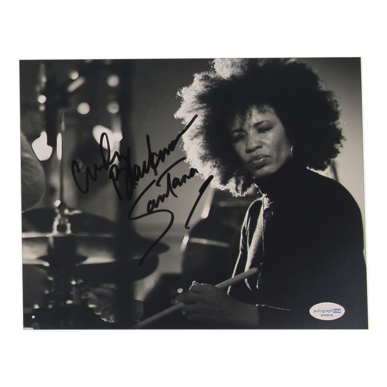 Photograph measures approximately 8" x 10" in size and has been hand-signed by Cindy Blackman Santana.