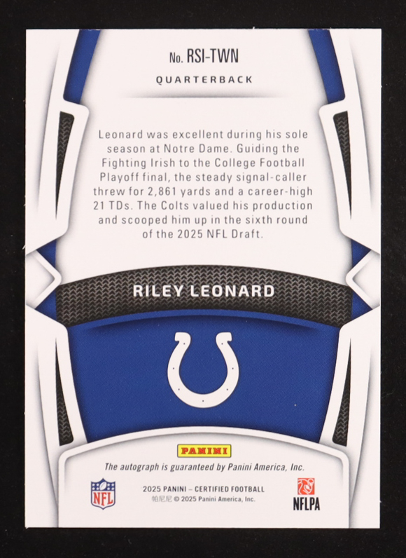 Riley Leonard 2025 Panini Certified Rookie Signatures Mirror Red #RSI-TWN RC #09/99
