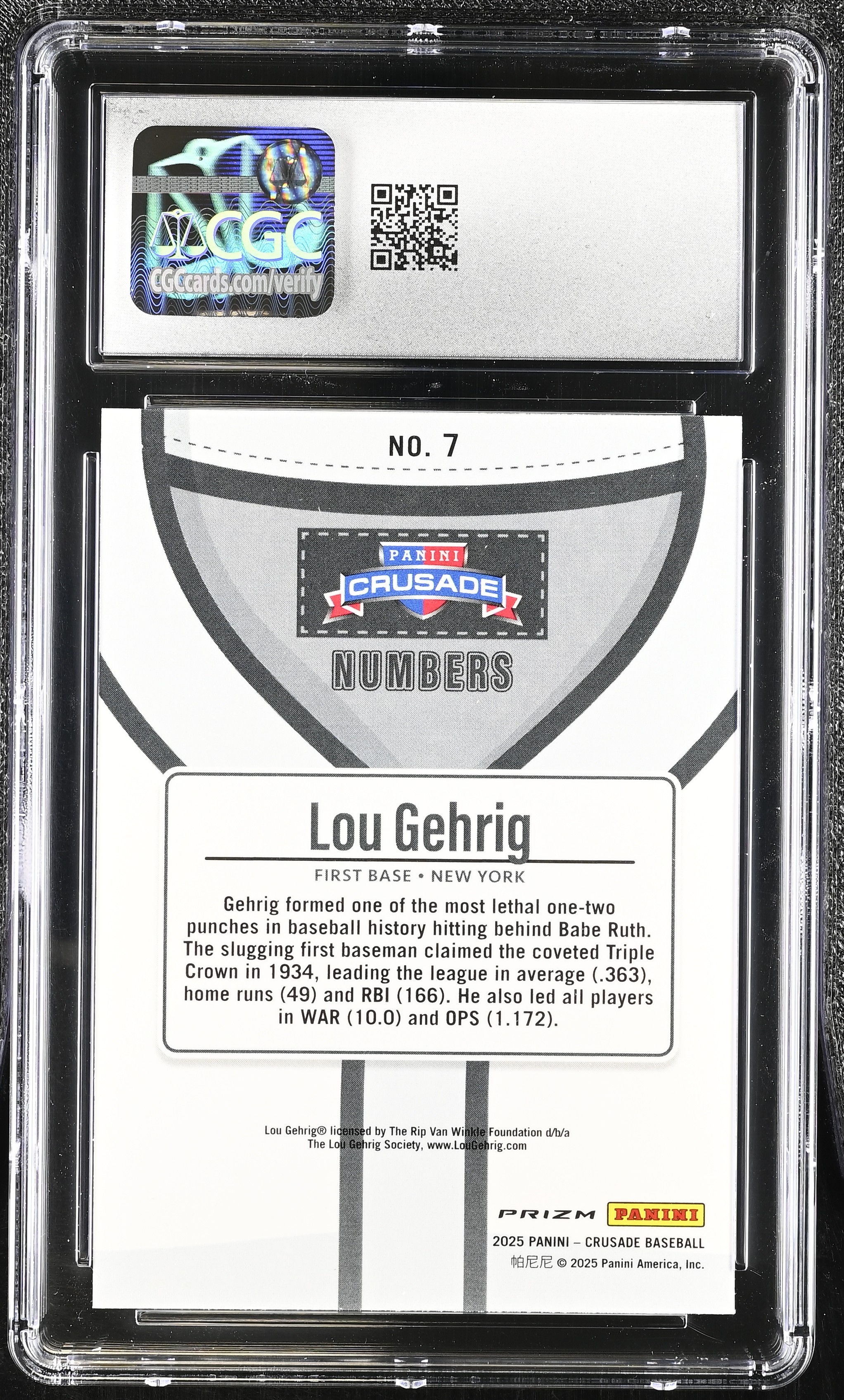 Lou Gehrig 2025 Panini Crusade Numbers #7 (CGC 8)