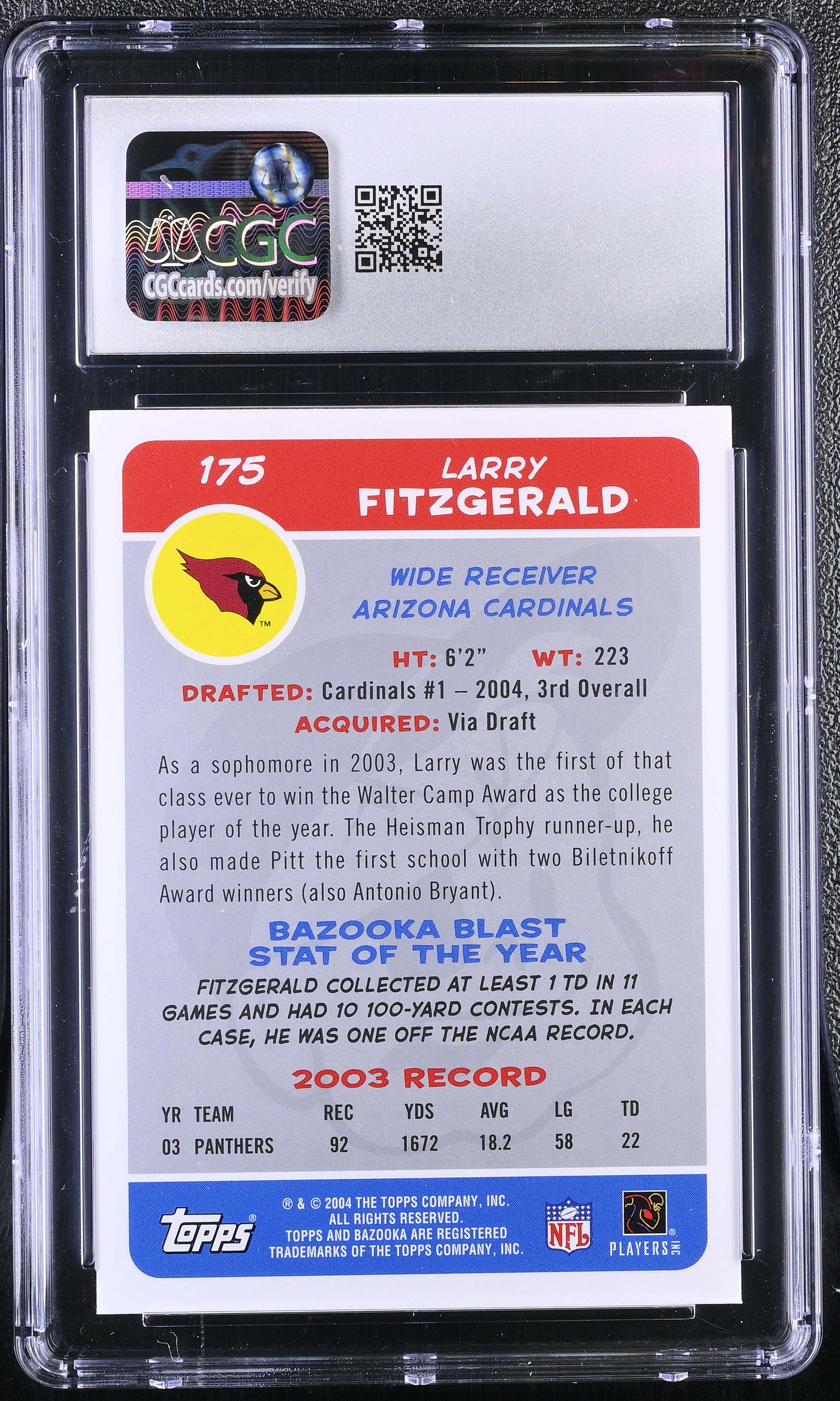 Larry Fitzgerald 2004 Topps Bazooka #175 (CGC 7.5)