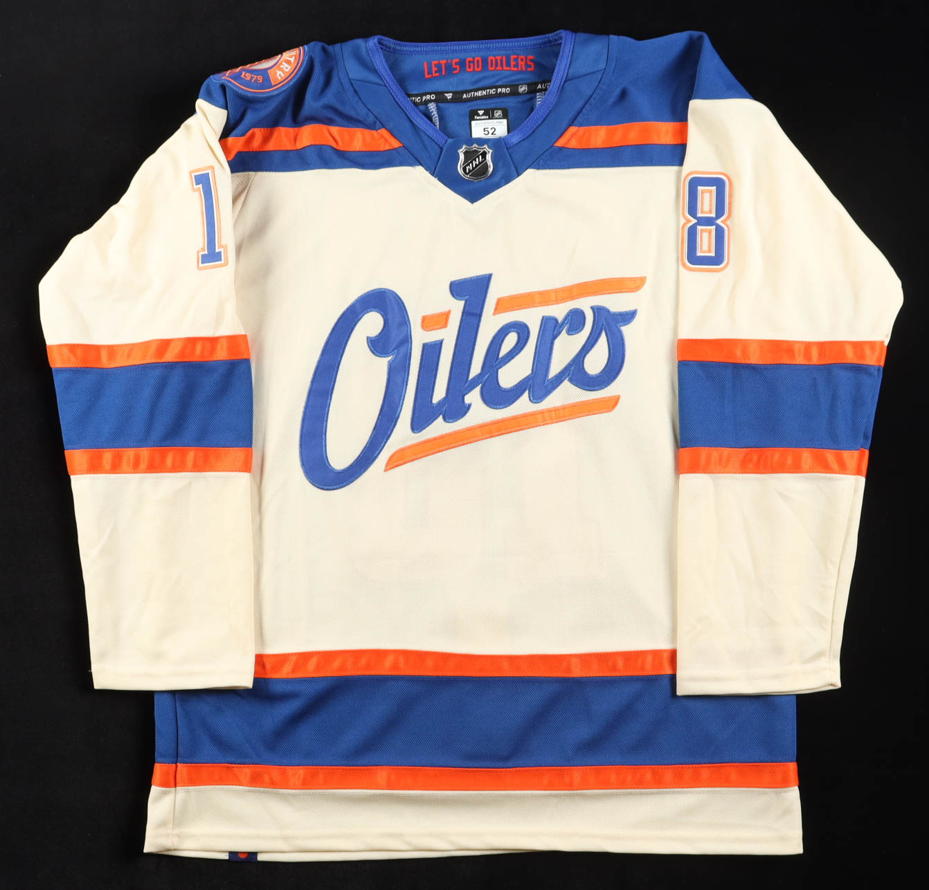 Fanatics authentic jersey with everything sewn on, size 52. Hand-signed by Zach Hyman. Please note, the signed number is stained.