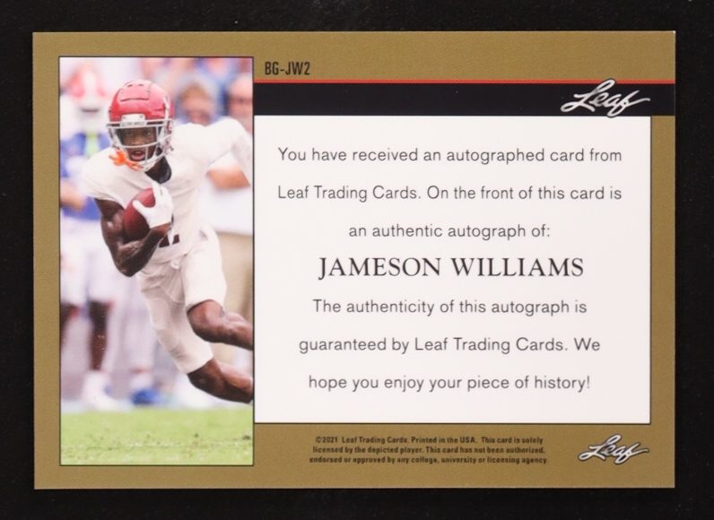 Jameson Williams 2021 Leaf Bronze Auto #BG-JW2 RC #13/99