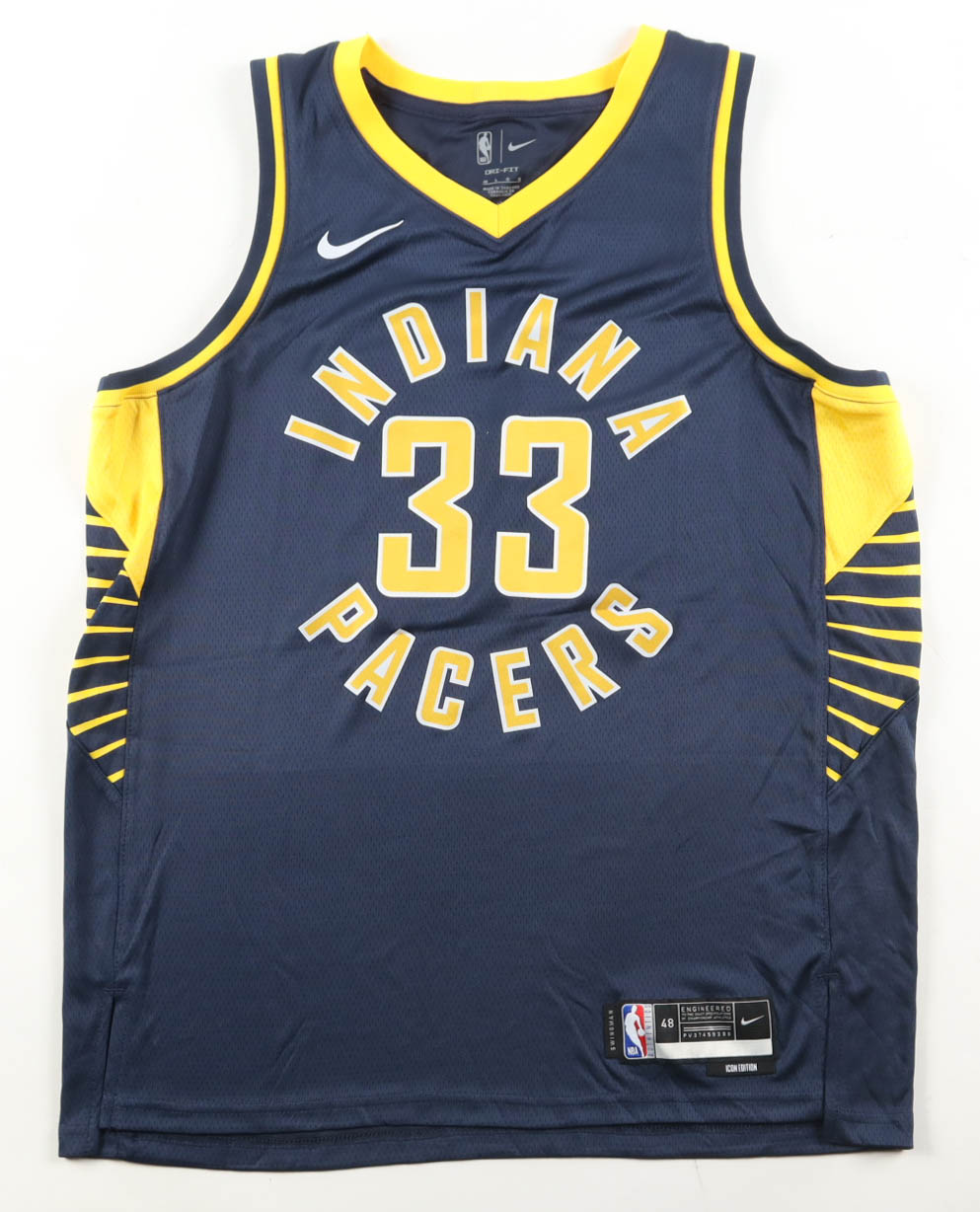 Nike authentic jersey with everything pressed on, size 48. Hand-signed by Myles Turner (Indiana Pacers).