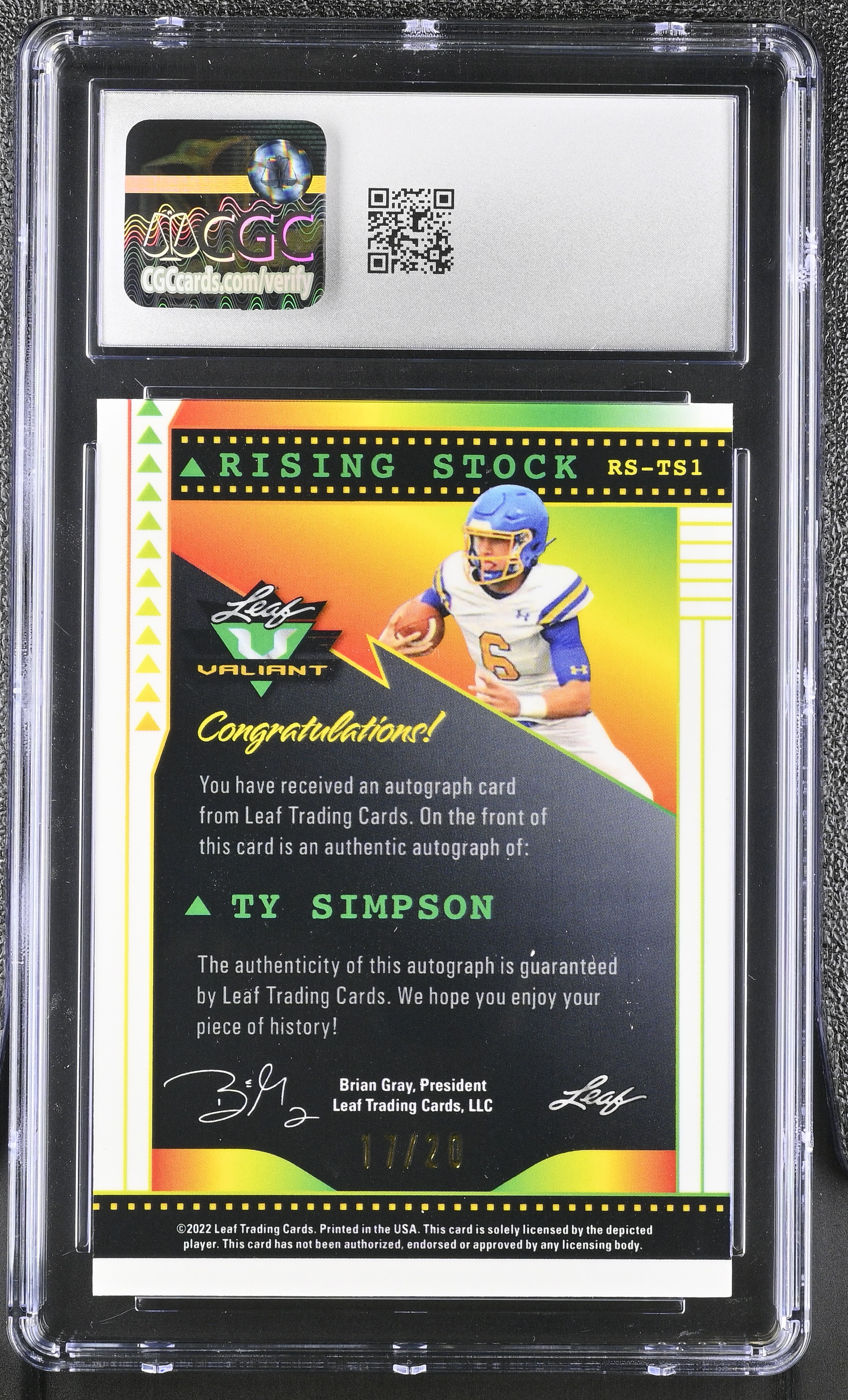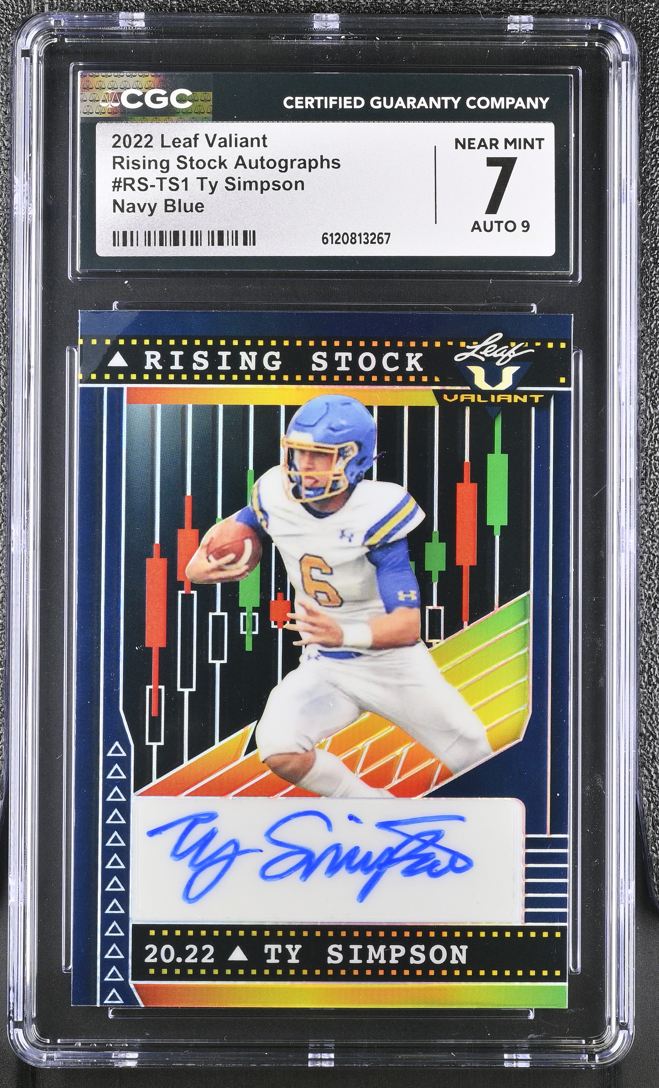 Ty Simpson 2022 Leaf Valiant Rising Stock Autographs Navy Blue #RS-TS1 (CGC 7 | Autograph Grade 9)