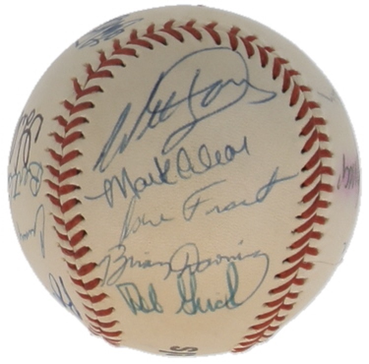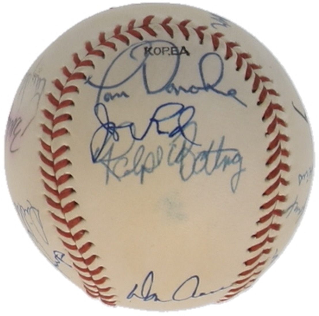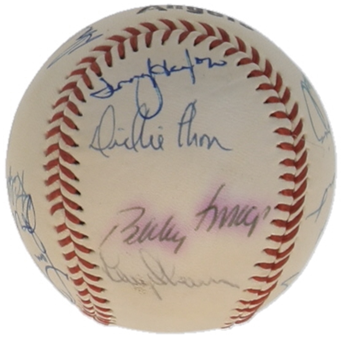 Please note - some signatures have bled and the baseball's leather has been naturally toned.