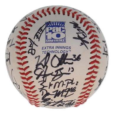 Official NCAA baseball has been hand-signed by (32) players. Notable signatures include Austin Barnes, Brady Rodgers, Deven Marrero, Jake Barrett and Trevor Williams.