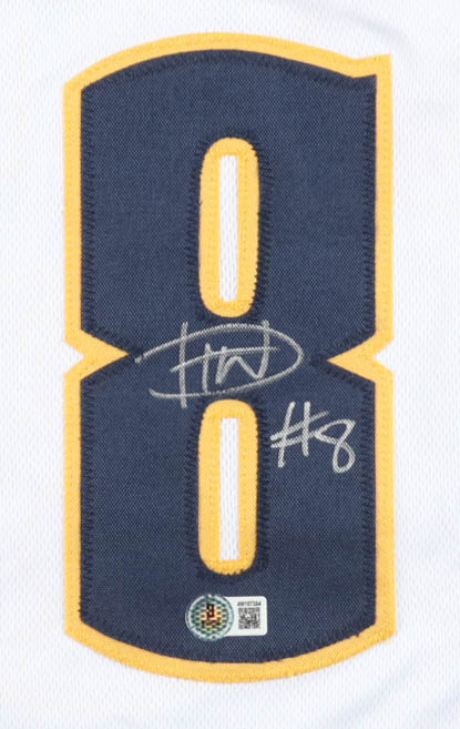 Custom jersey with everything sewn on, size XL. Hand-signed by Peyton Watson (Denver Nuggets). Please note, there is a stray pen mark near the bottom of the jersey.