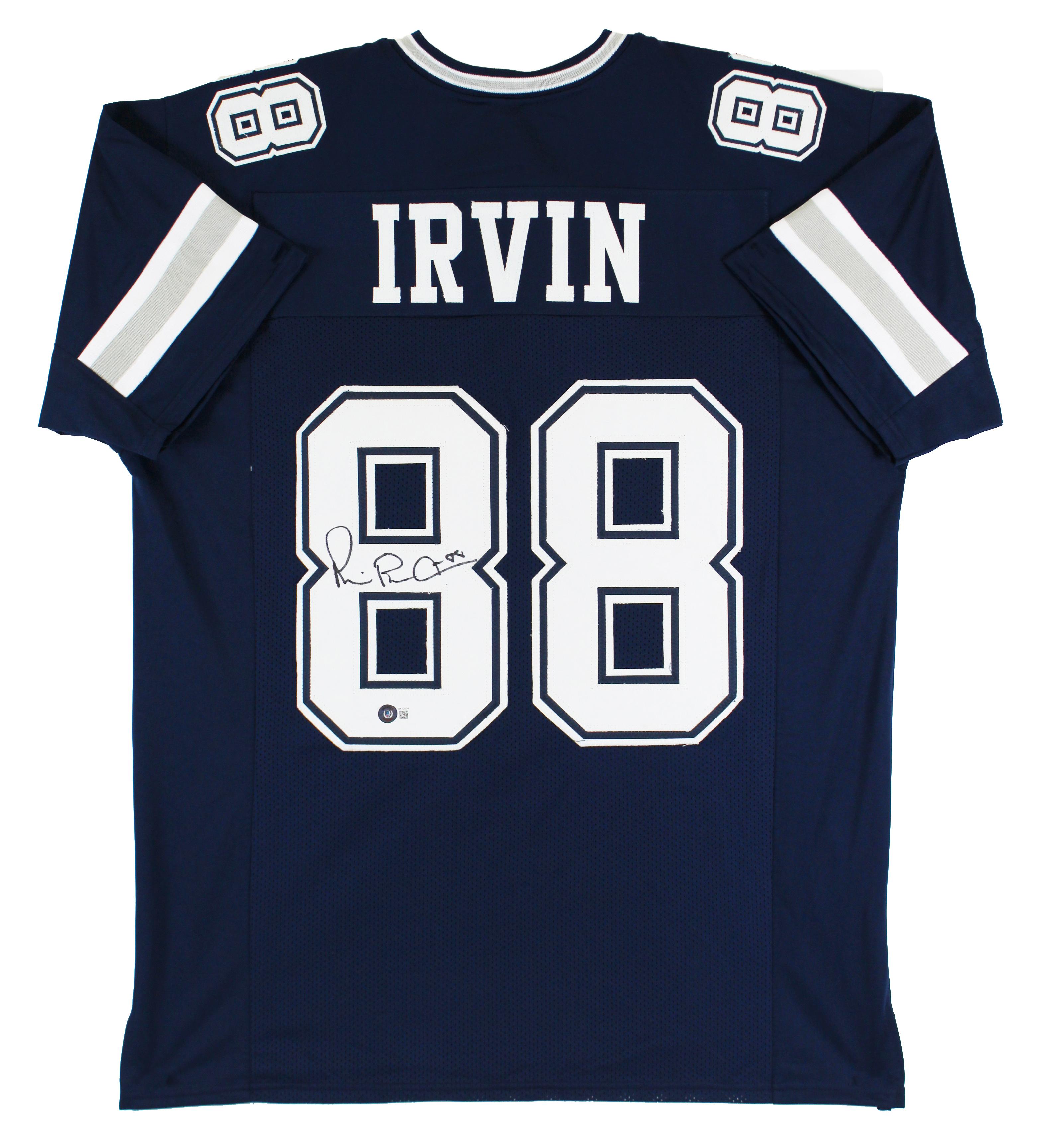 Custom jersey with everything sewn on, size XL. Hand-signed by Michael Irvin (Dallas Cowboys, HOF).