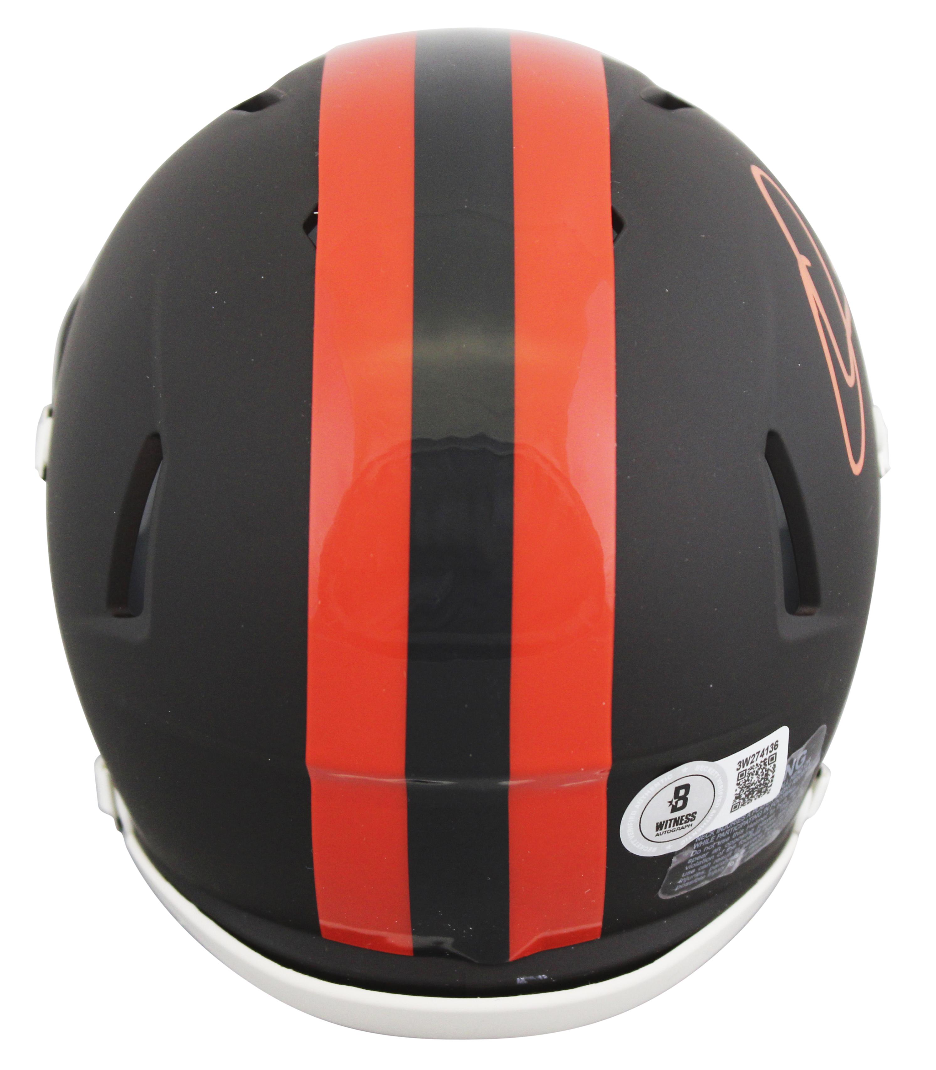 Riddell Cleveland Browns Speed mini helmet has been hand-signed by Quinshon Judkins.