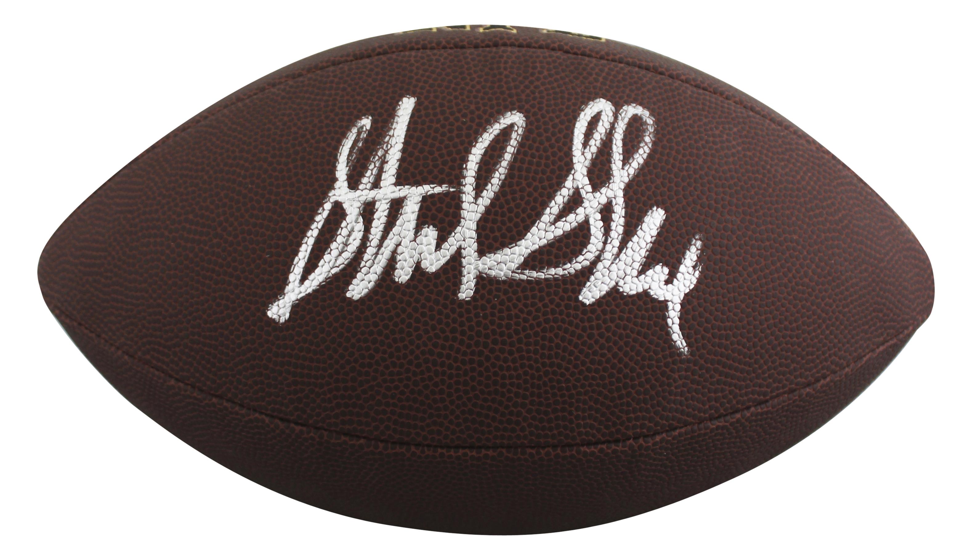 Wilson Super Grip Cover NFL football has been hand-signed by Sterling Sharpe (Green Bay Packers, HOF).