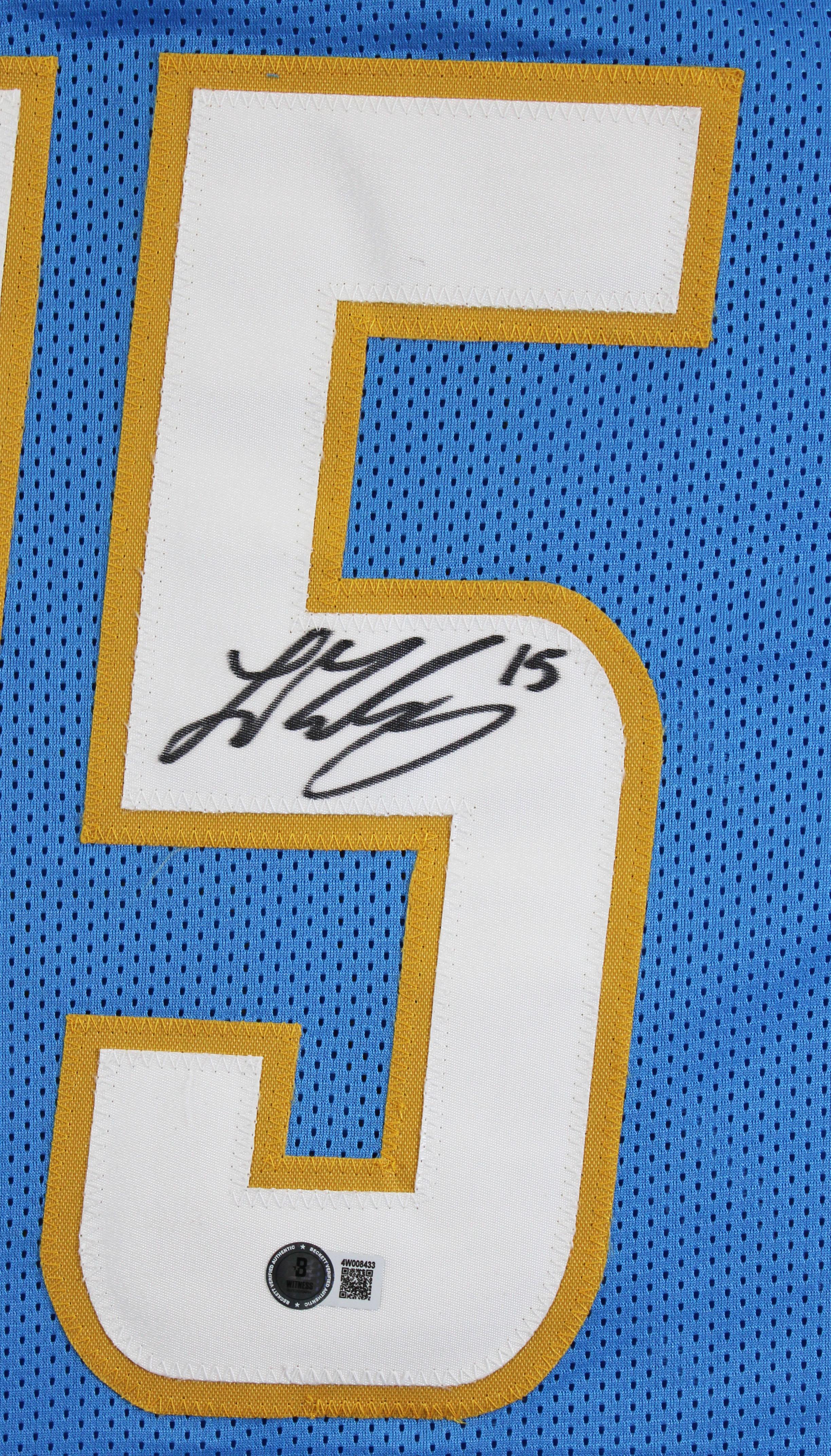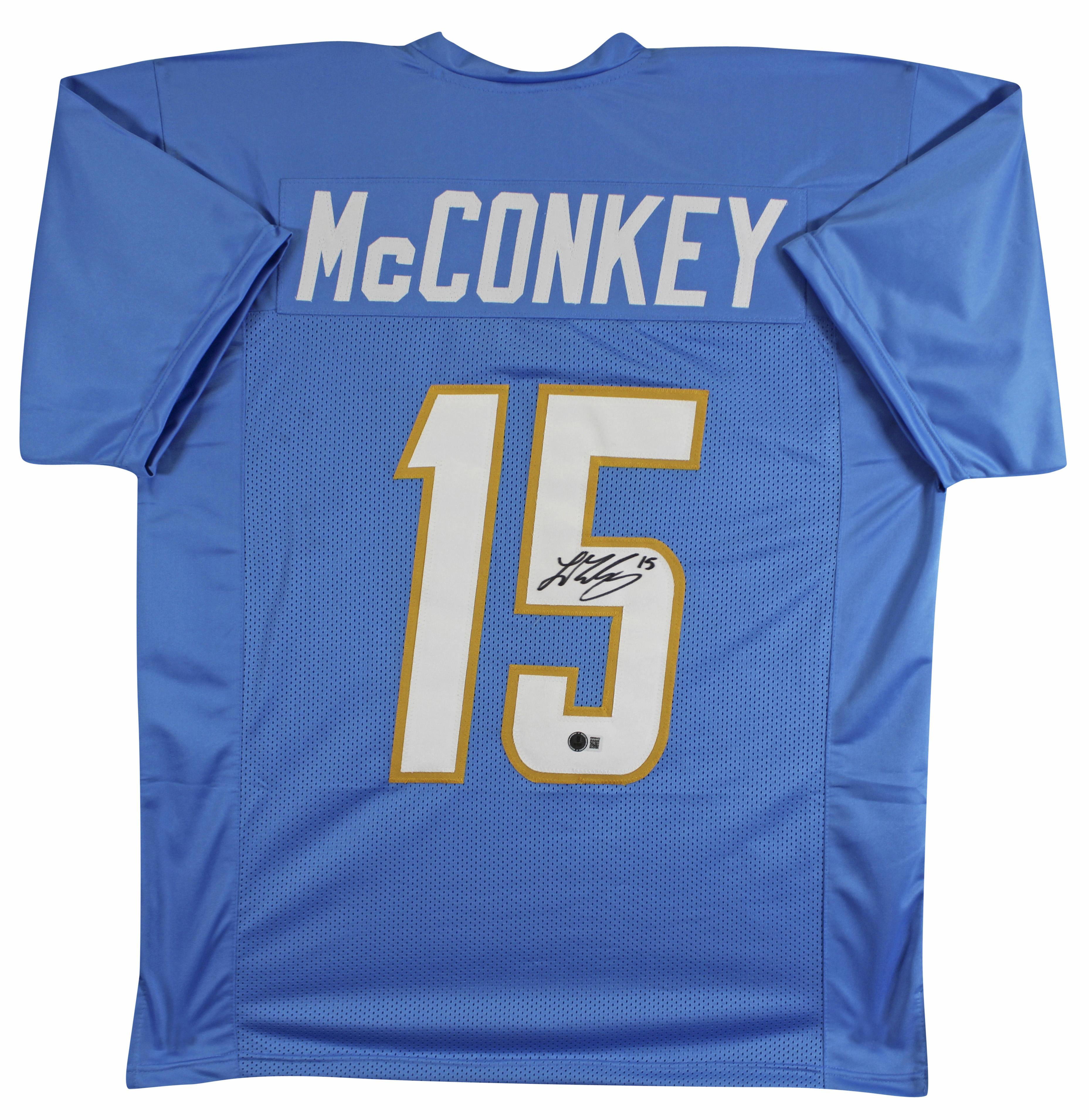 Custom jersey with everything sewn on, size XL. Hand-signed by Ladd McConkey.