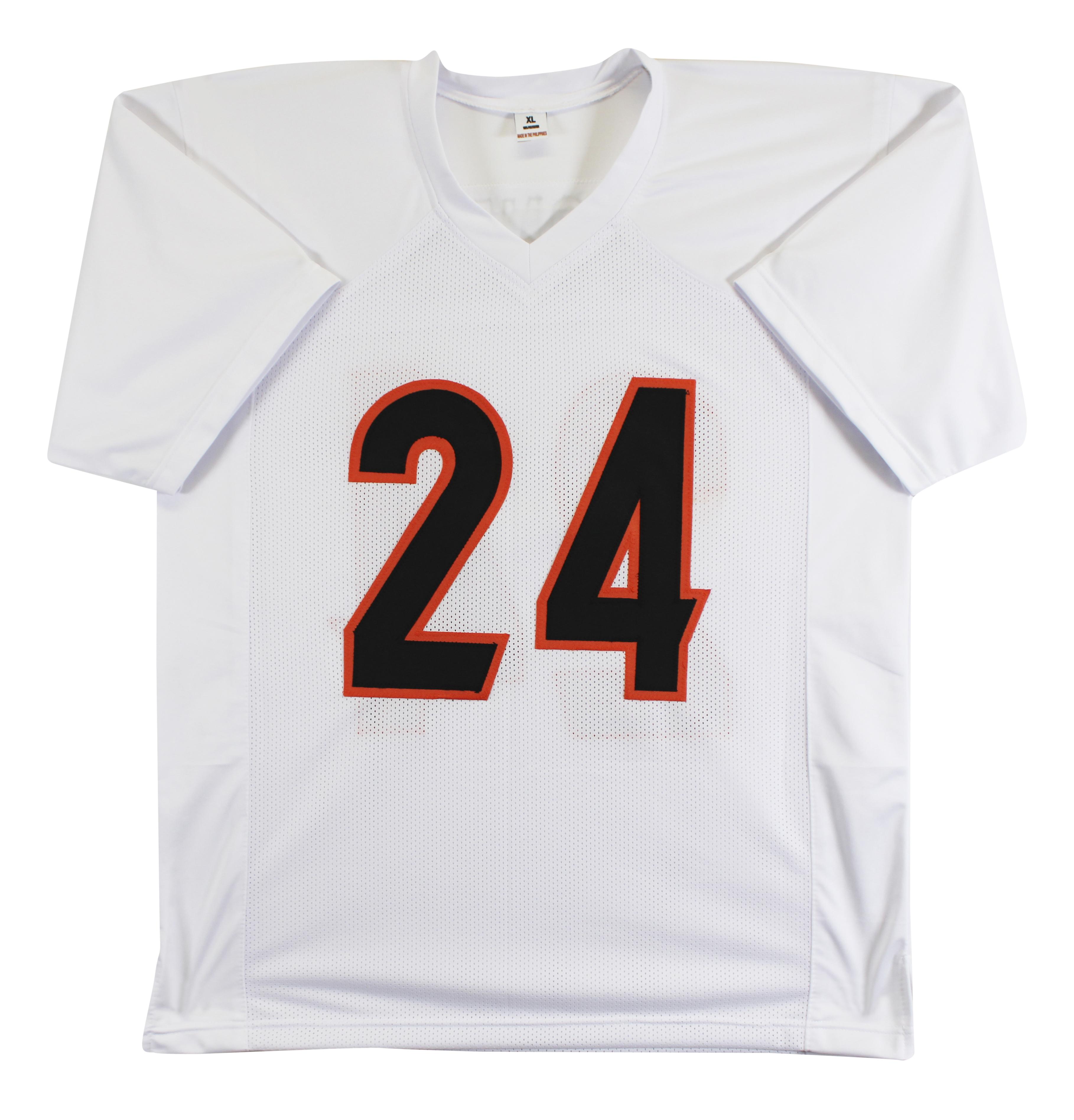 Custom jersey with everything sewn on, size XL. Hand-signed by Adam "Pacman" Jones.