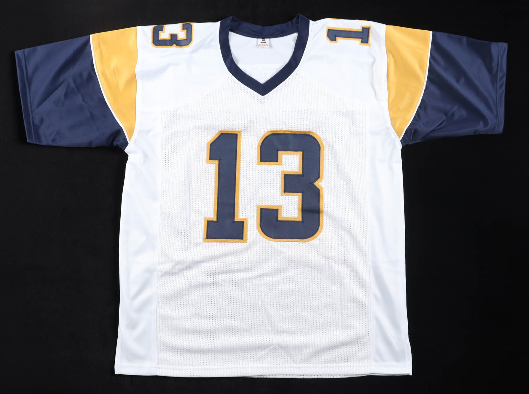 Custom jersey with everything sewn on, size XL. Hand-signed by Kurt Warner (St. Louis Rams, HOF)