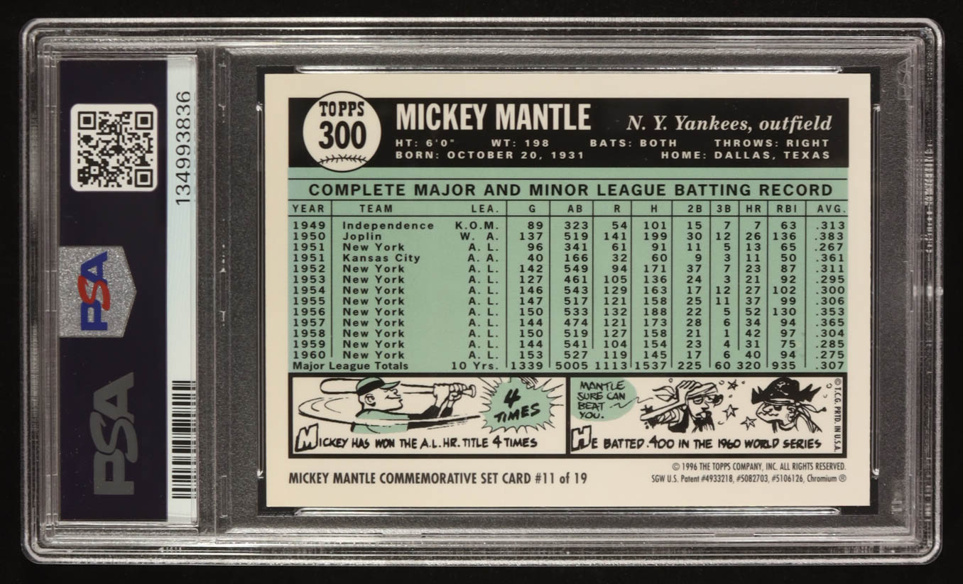 Mickey Mantle 1996 Topps Mantle Finest Refractors #11 1961 Topps Reprint (PSA 8)