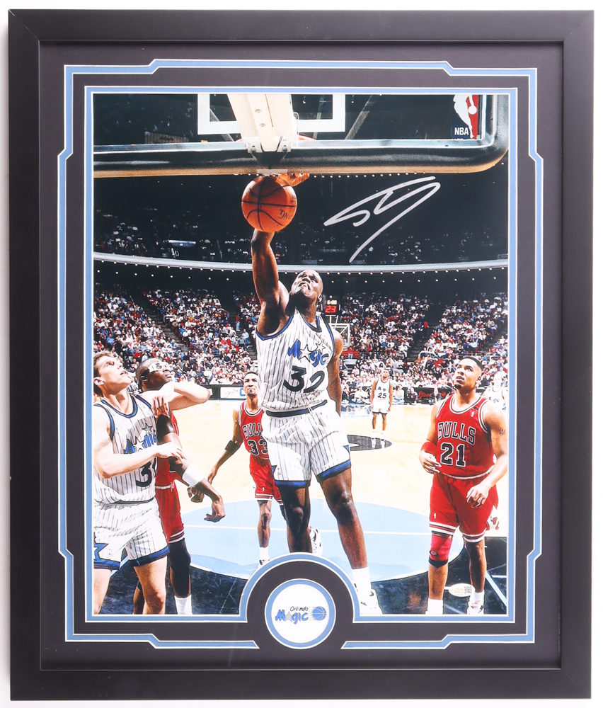 Custom frame measures 22" x 26" in size and features a photo that has been hand-signed by Shaquille O'Neal (Orlando Magic, HOF).