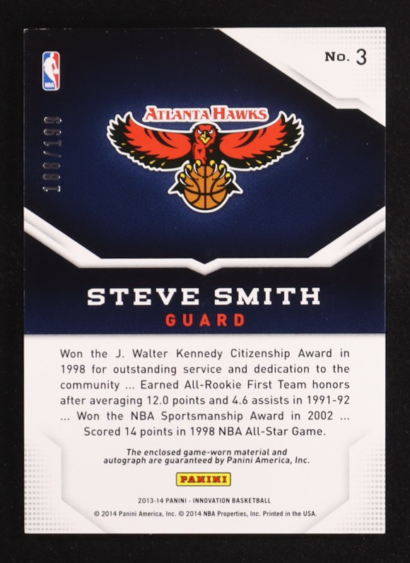 Steve Smith 2013-14 Panini Innovation Game Jersey Autographs #3 #188/199