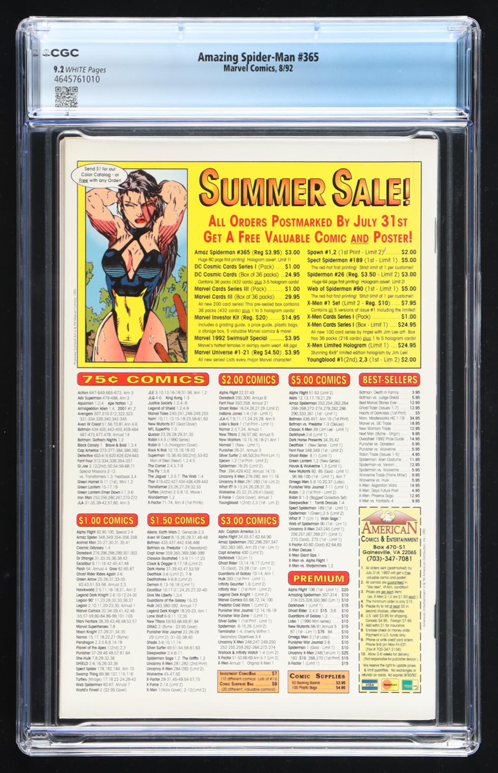 1992 "The Amazing Spider-Man" Issue #365 Marvel Comic Book (CGC 9.2)