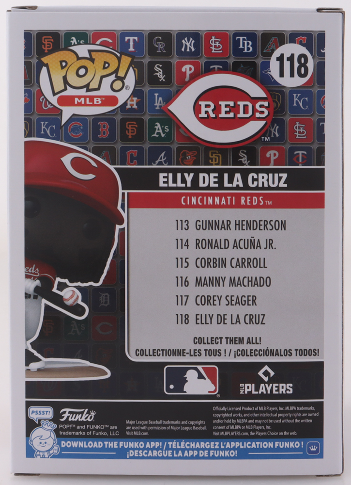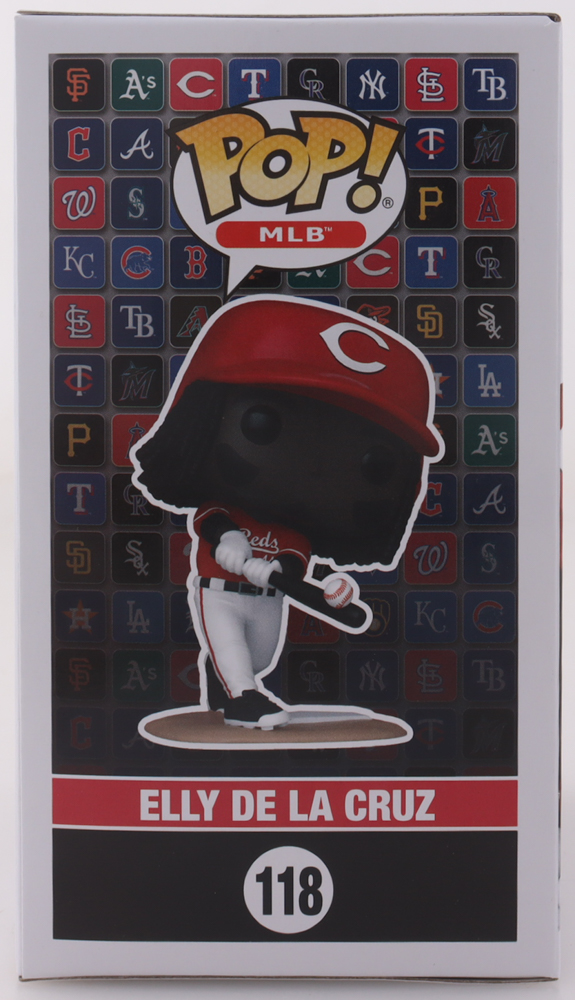 Funko Pop! figure measures approximately 4" in height and has been hand-signed on the packaging by Elly De La Cruz (Cincinnati Reds).