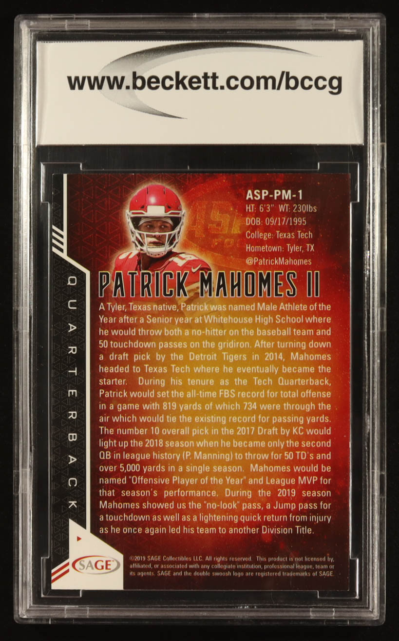 Patrick Mahomes II 2019 SAGE Aspire Silver #ASPPM1 (BCCG 10)