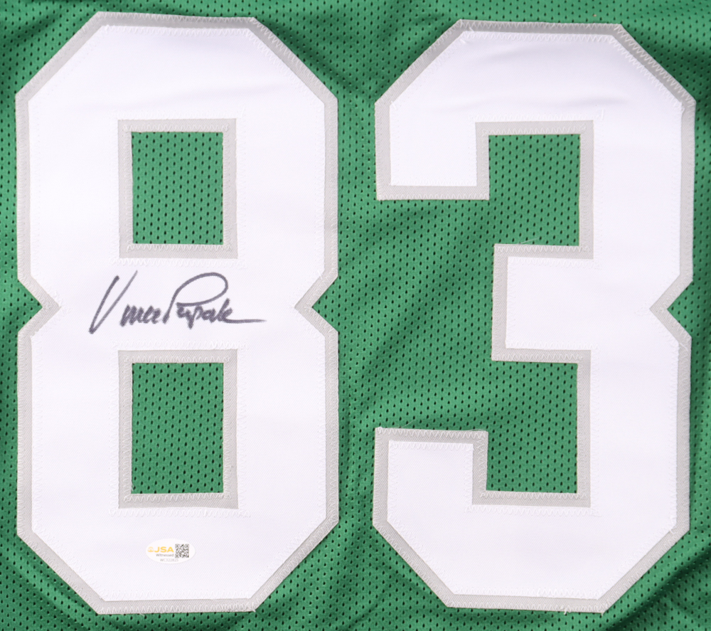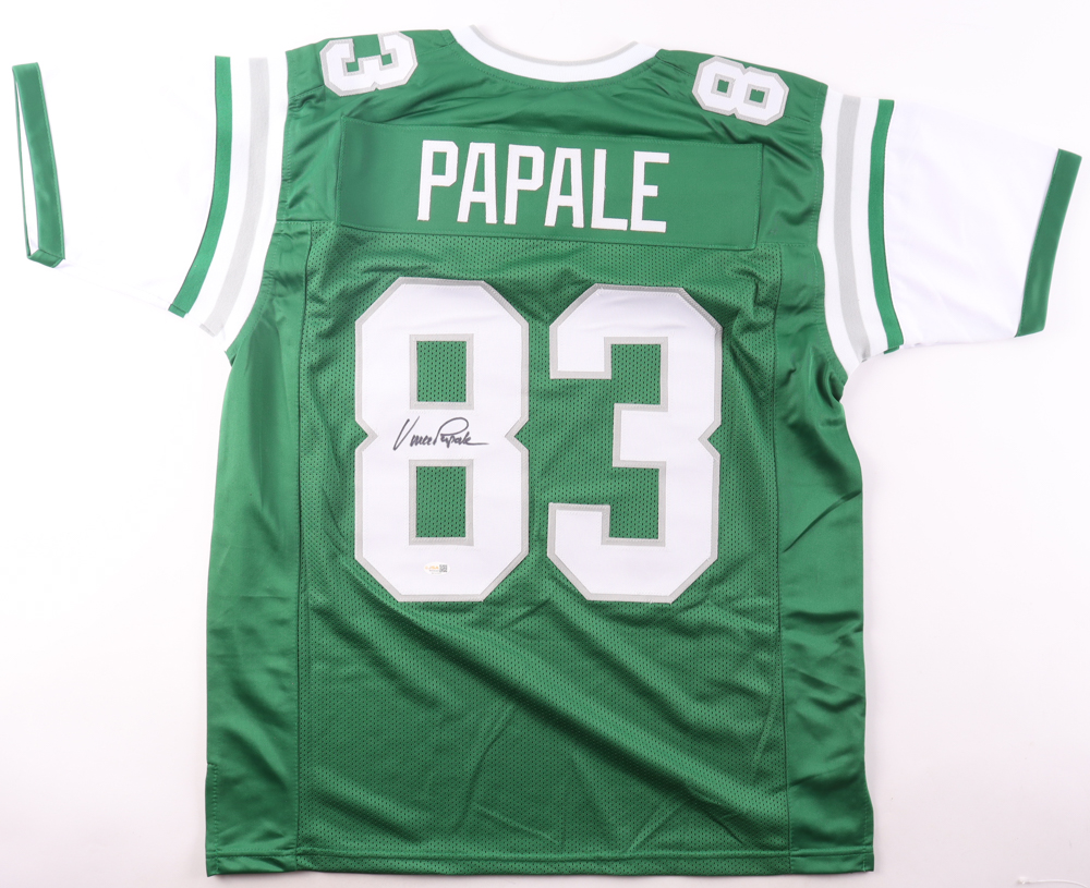 Custom jersey. Everything sewn on, size XL, has been hand-signed by Vince Papale. Please note, the signature ink has bled.