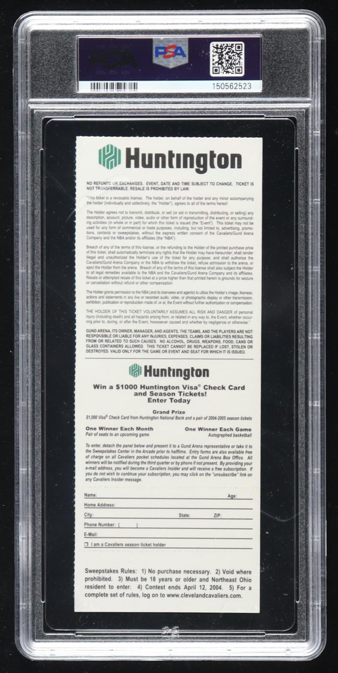 Lebron James 2004 Cleveland Cavaliers Originals Rookie Game Ticket (PSA 6)