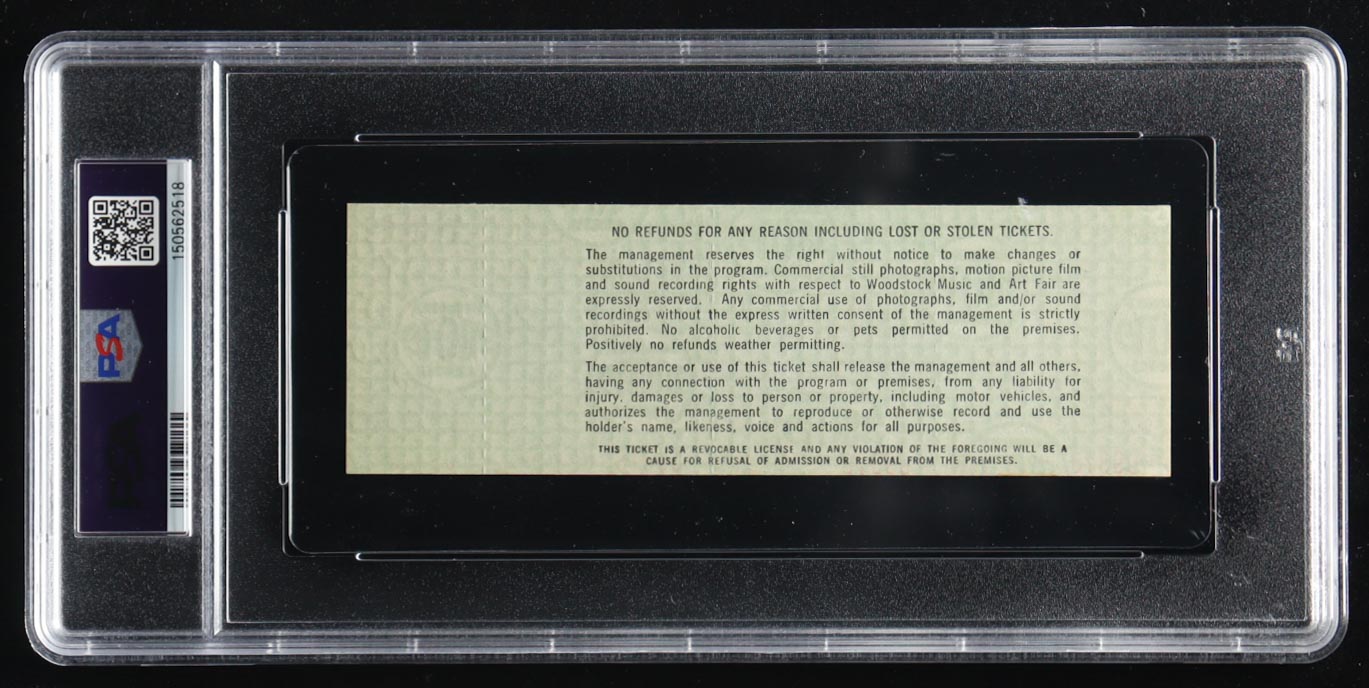 1969 Original Woodstock Full Ticket has been graded PSA (Mint 9) Please refer to photos regarding the condition of the item.