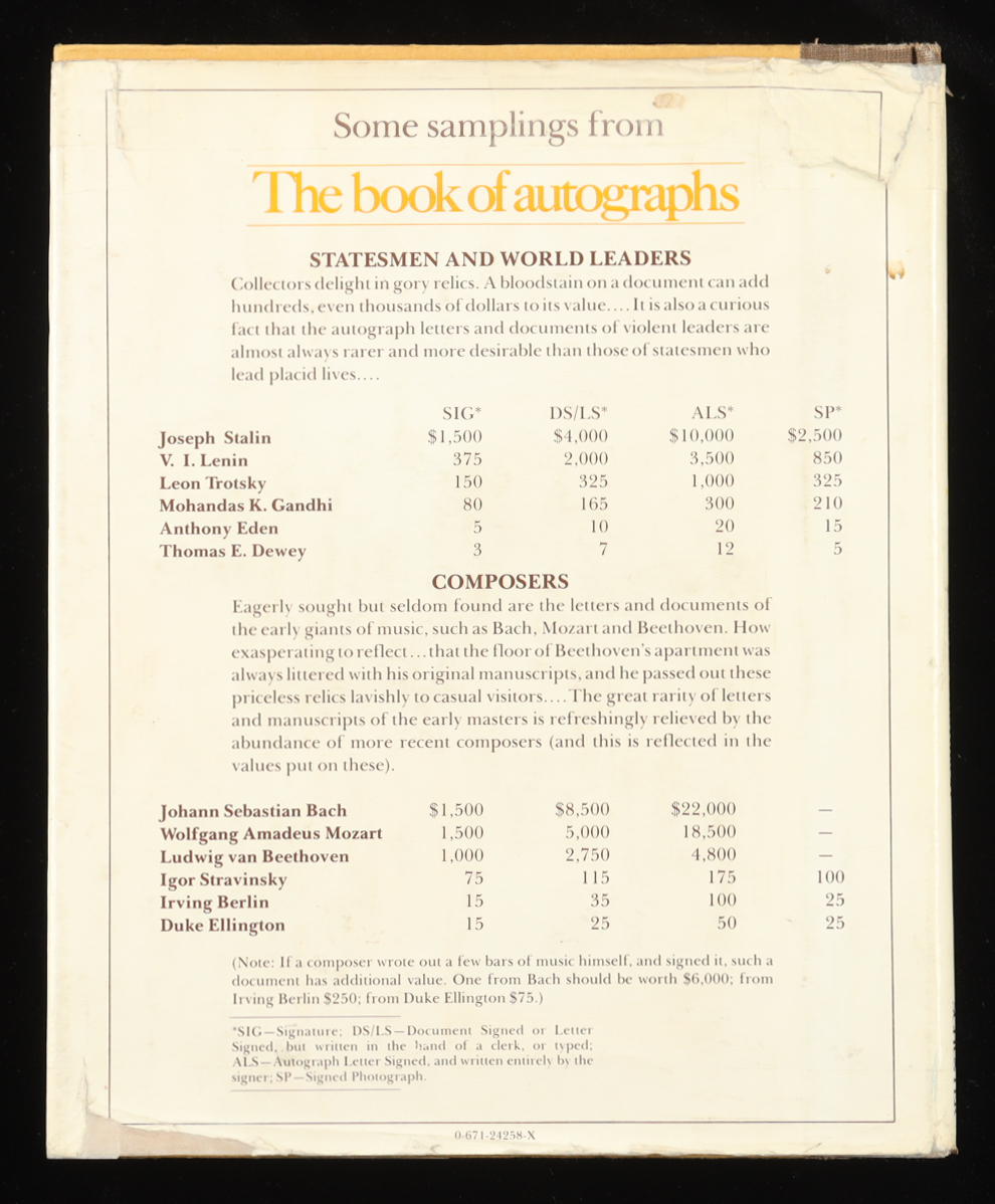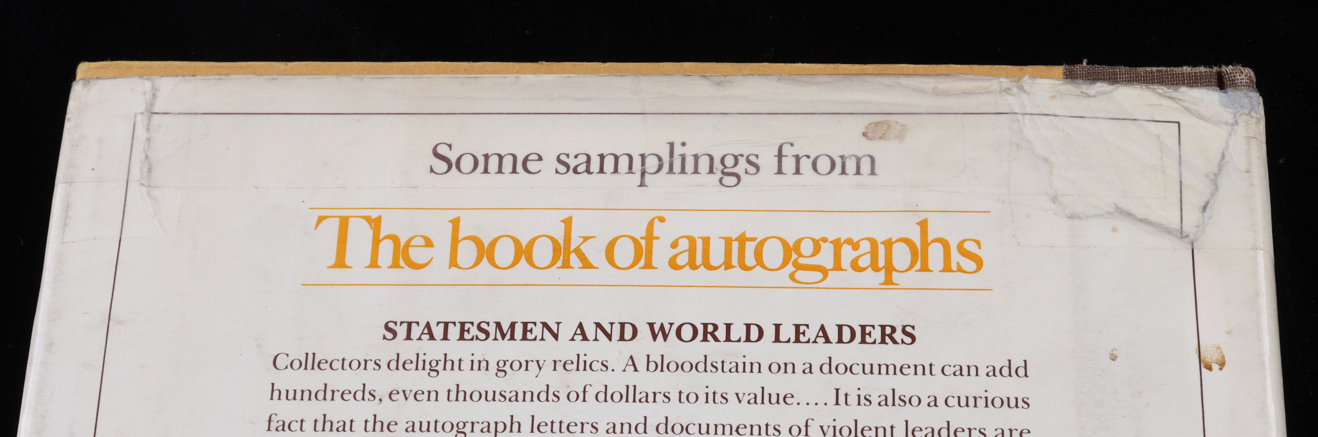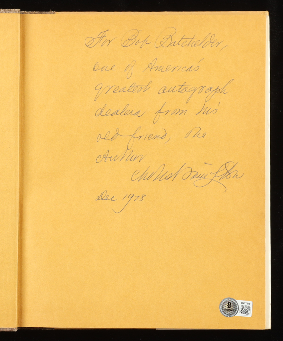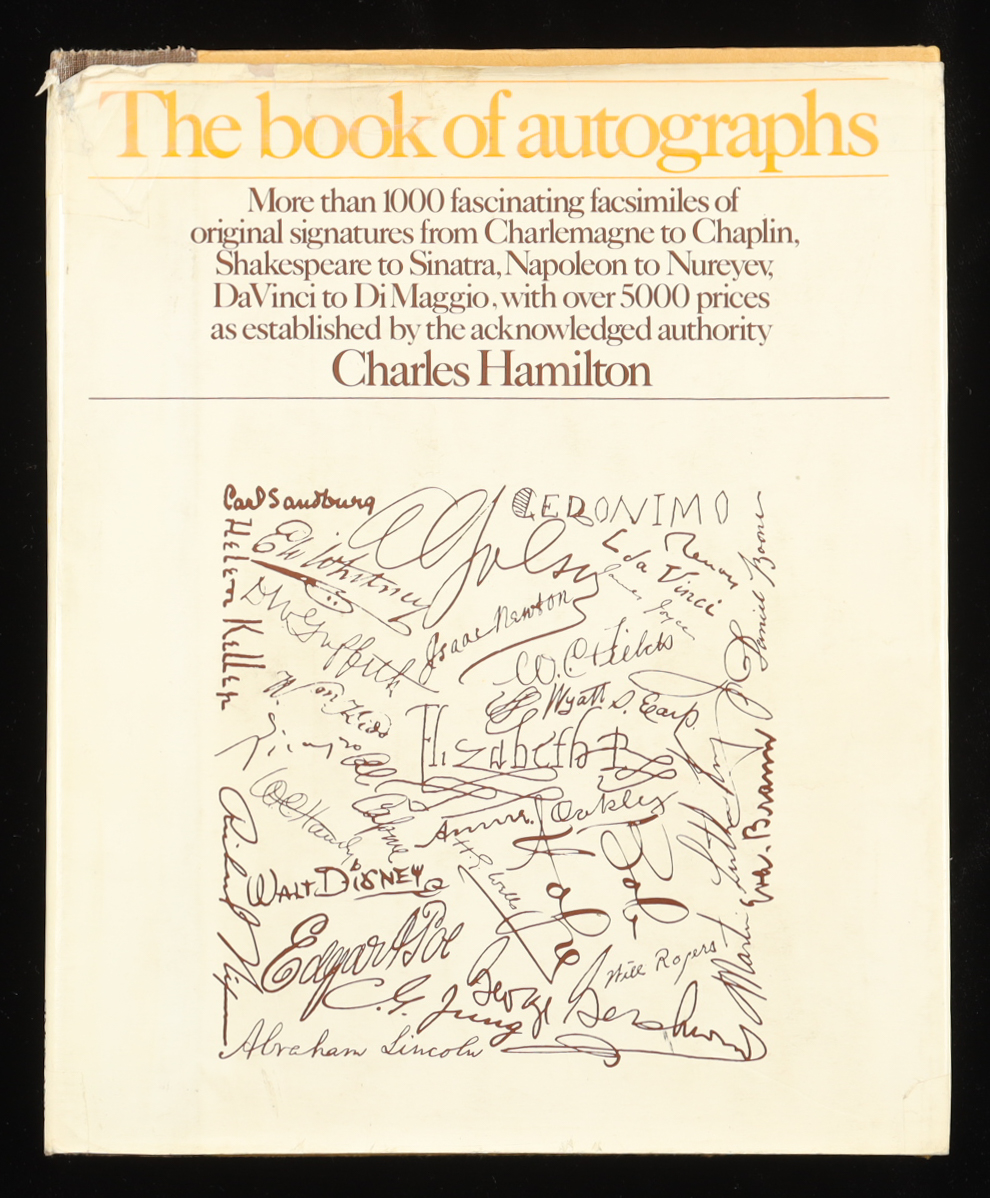 Hardcover book that has been hand-signed and inscribed on the inside cover page by Charles Hamilton (D. 1998). Please note the book has many damages to the cover sleeve. Please note all other signatures are facsimile on the cover and other pages.