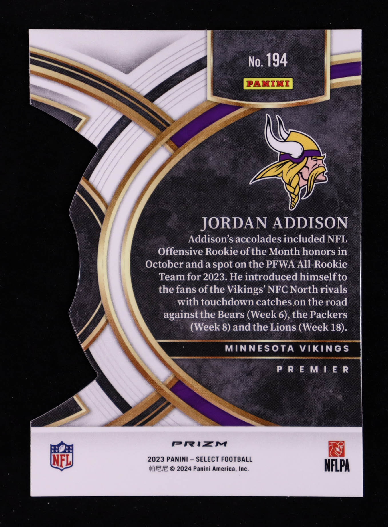 Jordan Addison 2023 Select Prizm Silver #194 RC
