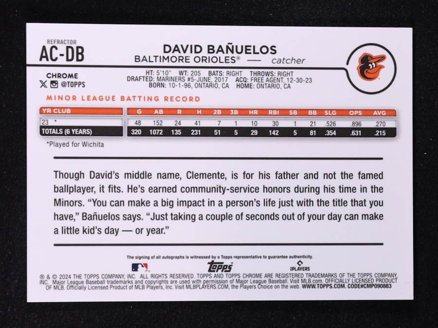 David Banuelos 2024 Topps Chrome Update Autographs Refractors #ACDB RC #449/499