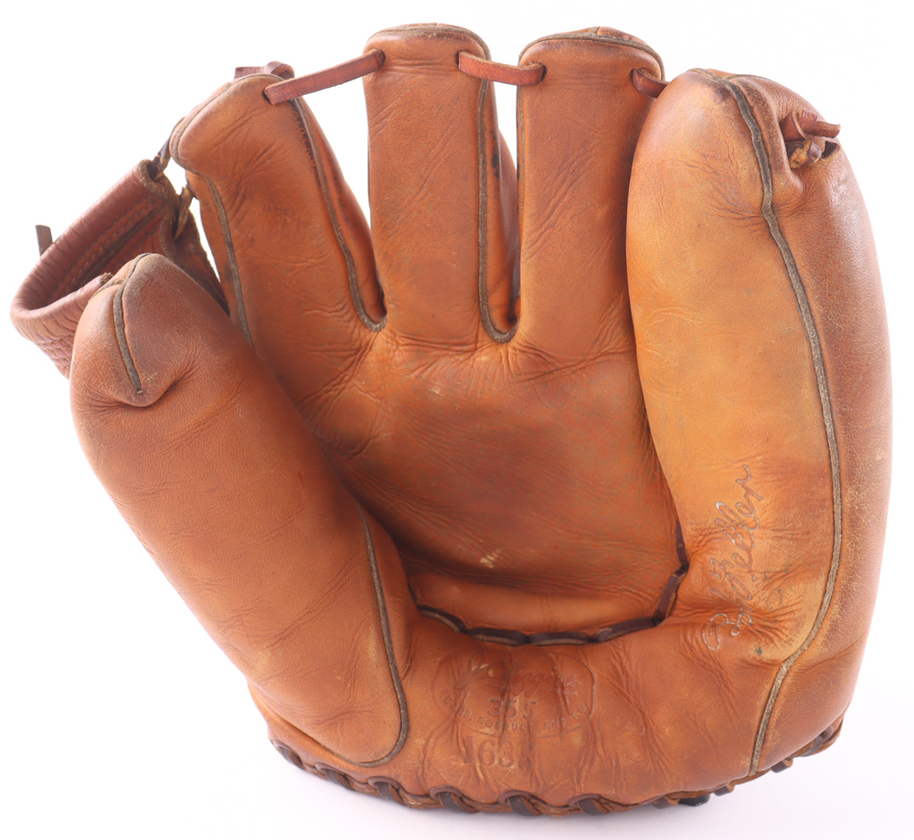 Vintage Bob Feller JC Higgins player model baseball glove. Please refer to photographs for the condition of the item (Cleveland Indians).