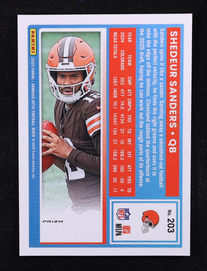 Shedeur Sanders 2025 Panini Donruss Optic Rated Rookie Blue Hyper #203 RC