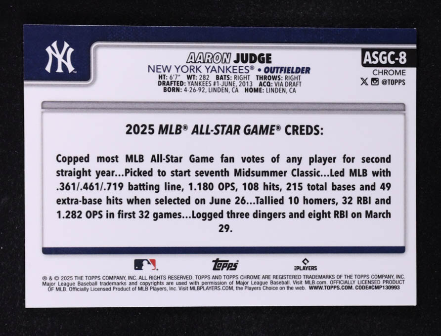 Aaron Judge 2025 Topps Chrome All Star Game #ASGC-8
