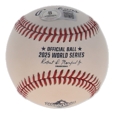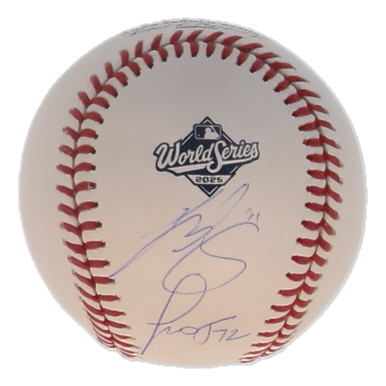 Rawlings Official Major League 2025 World Series Logo Baseball. Hand-signed by Miguel Rojas and Tyler Glasnow (Los Angeles Dodgers).